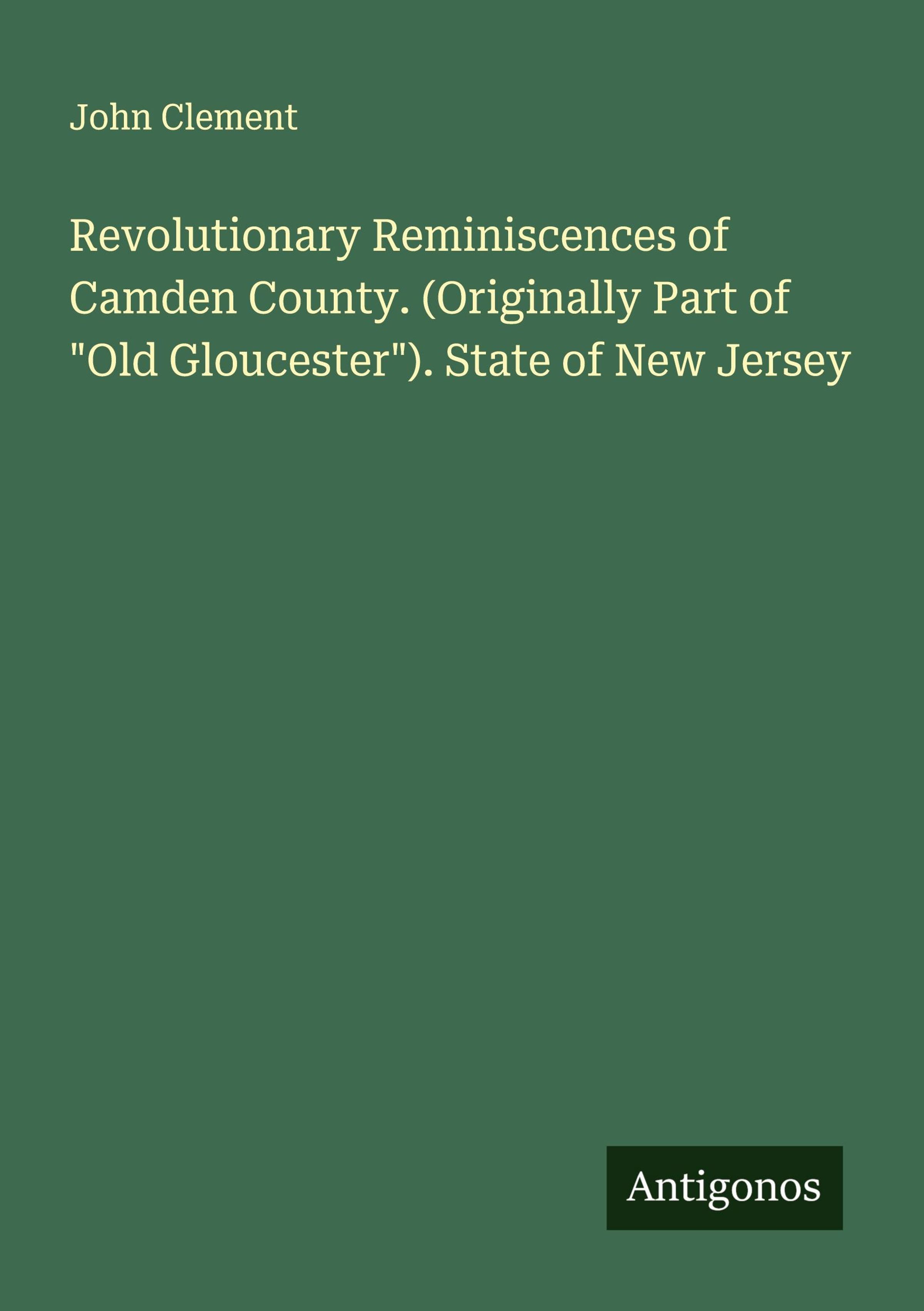 John Clement: Revolutionary Reminiscences of Camden County. (Originally Part of "Old Gloucester"). State of New..., Kartoniert / Broschiert