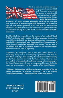 "Diplomacy By Deception" tells us that the United Nations is a war-making body, not a peace-keeping organization, and how the Rockefellers and Alger Hiss, aided by the top Illuminati Dulles family, got the United States involved with the United Nations. There is a masterly analysis of constitutional roadblocks barring U. S. membership of the United Nations that will come as a surprise and leave no doubt that we are not now, nor can we ever be, a member of the United Nations.