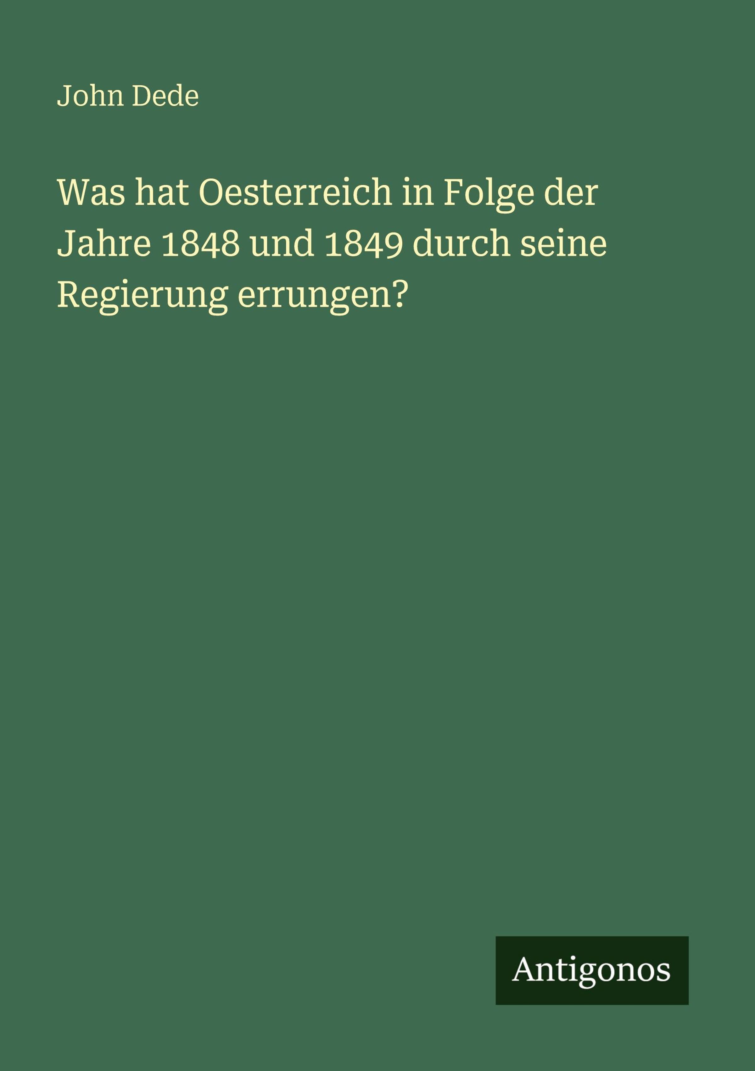 John Dede: Was hat Oesterreich in Folge der Jahre 1848 und 1849 durch seine Regierung errungen?, Kartoniert / Broschiert