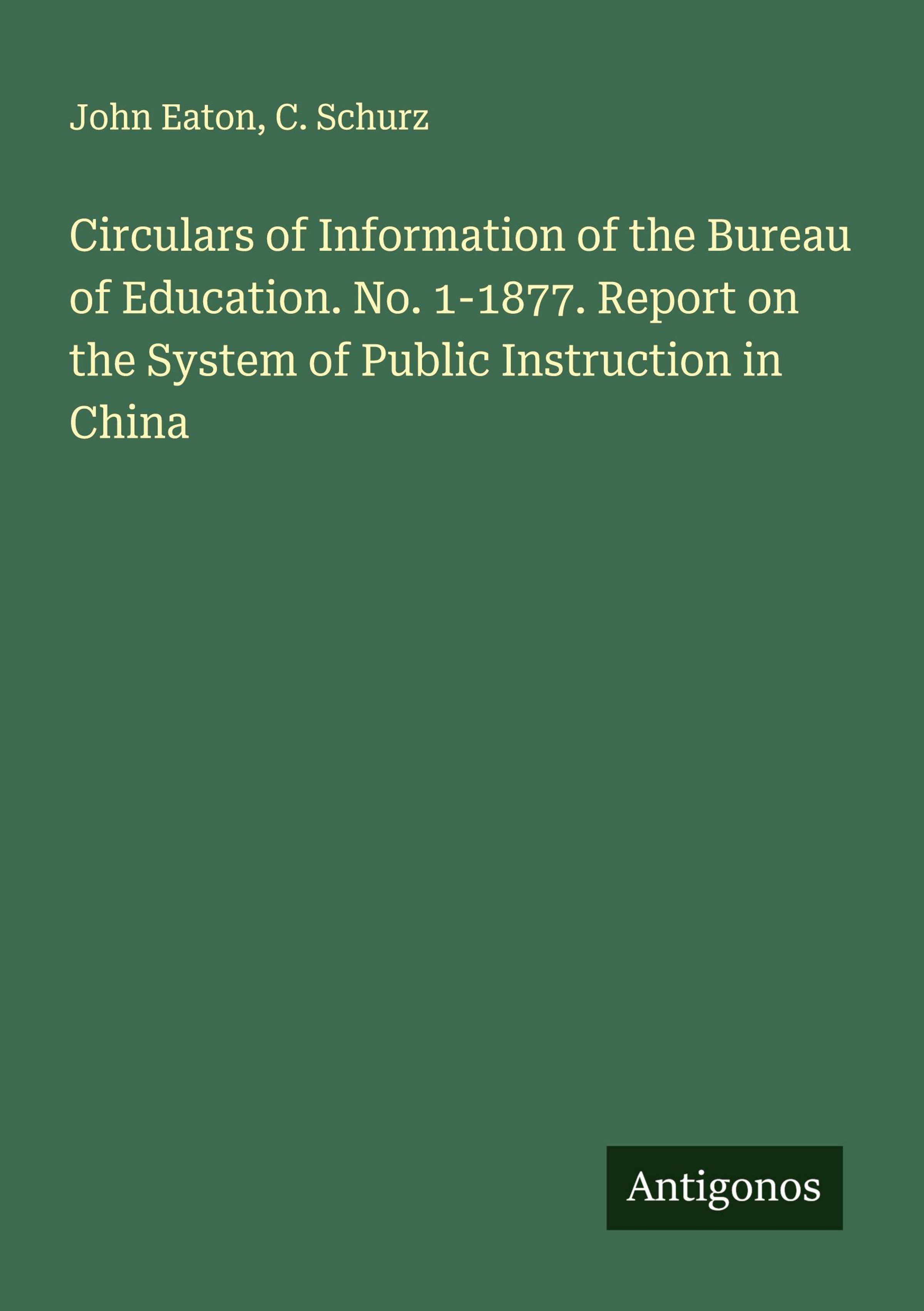 Circulars of Information of the Bureau of Education. No. 1-1877. Report on the System of Public Instruction in China