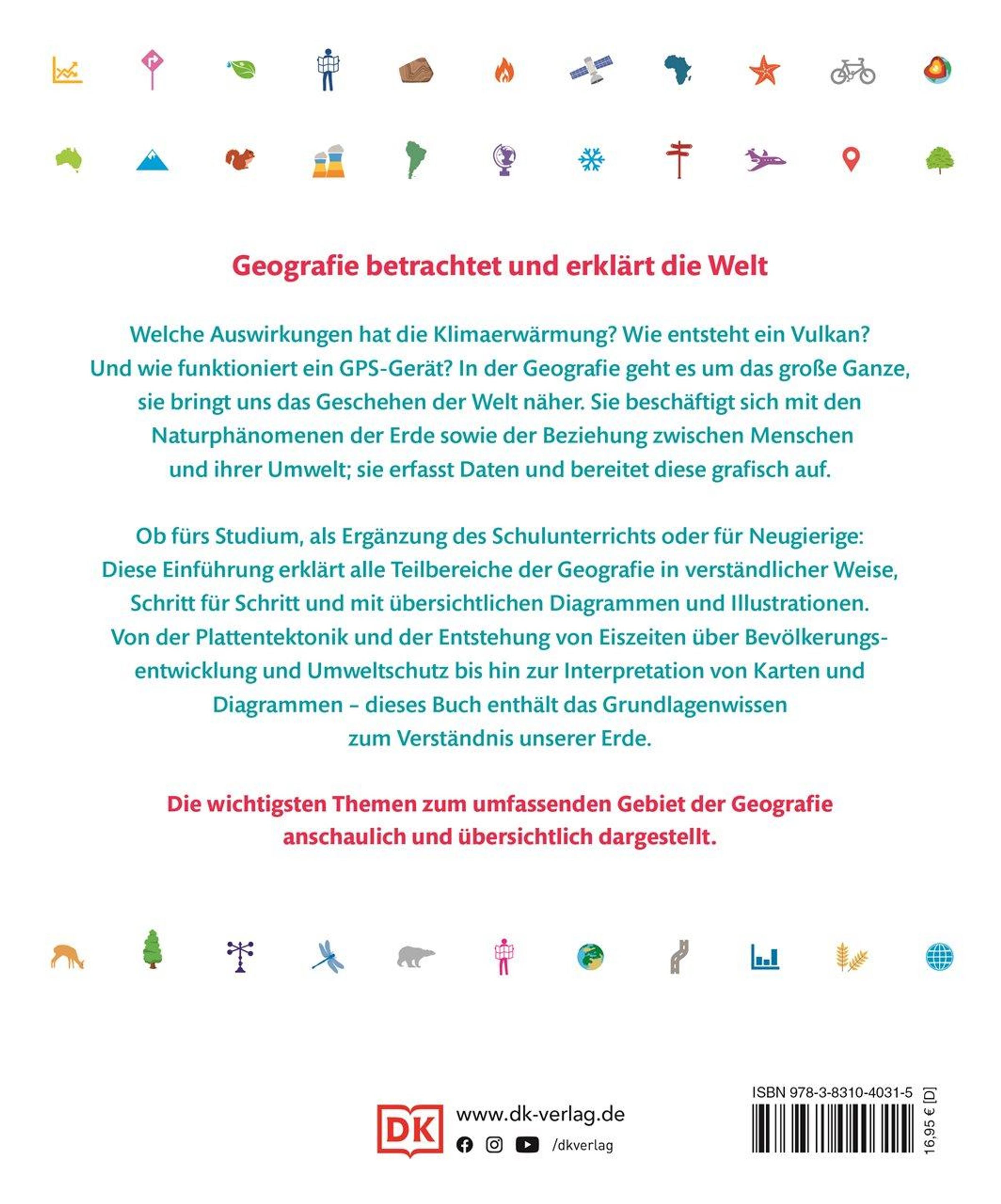 Das große Ganze aus natur- und sozialwissenschaftlicher Perspektive! Dieses Buch bietet Ihnen fundiertes Grundlagenwissen sowohl zur physischen Geografie & Humangeografie als auch zur angewandten Geografie . Ob die Beschaffenheit der Erde, ihr Aufbau, ihre Lebensräume und Phänomene, ihre Bevölkerung und deren Einflussnahme oder ihre Darstellung und Erfassung - kompakt & anschaulich wird hier Grundwissen erklärt . So eignet sich das Buch auch als Nachschlagewerk für Schüler*innen und Studenten*innen.