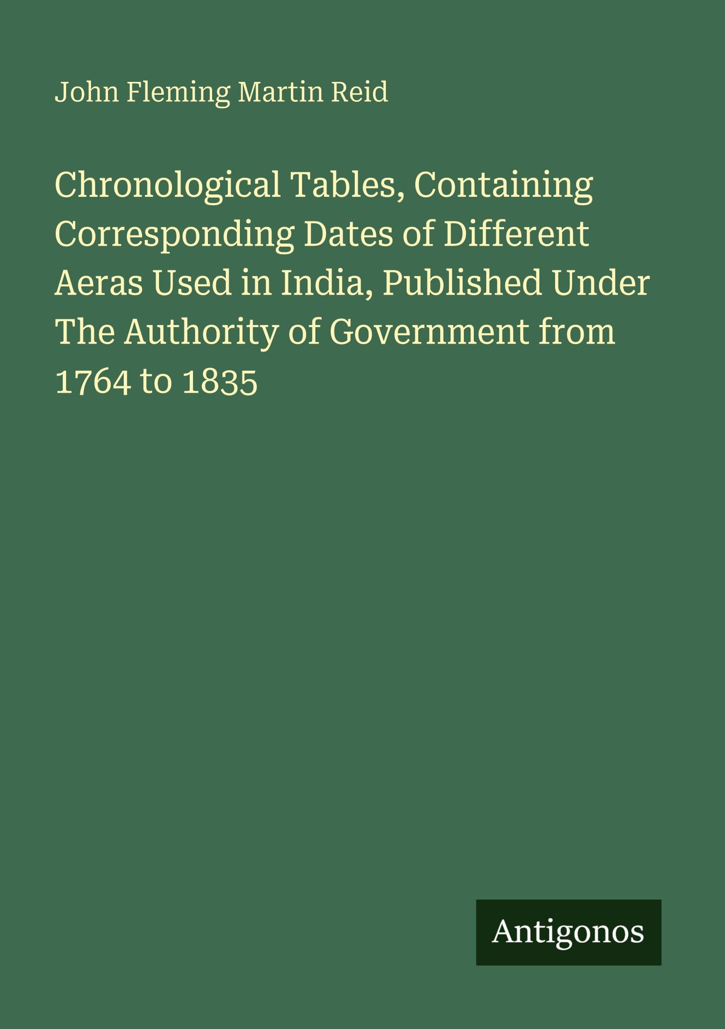 John Fleming Martin Reid: Chronological Tables, Containing Corresponding Dates of Different Aeras Used in India,..., Kartoniert / Broschiert