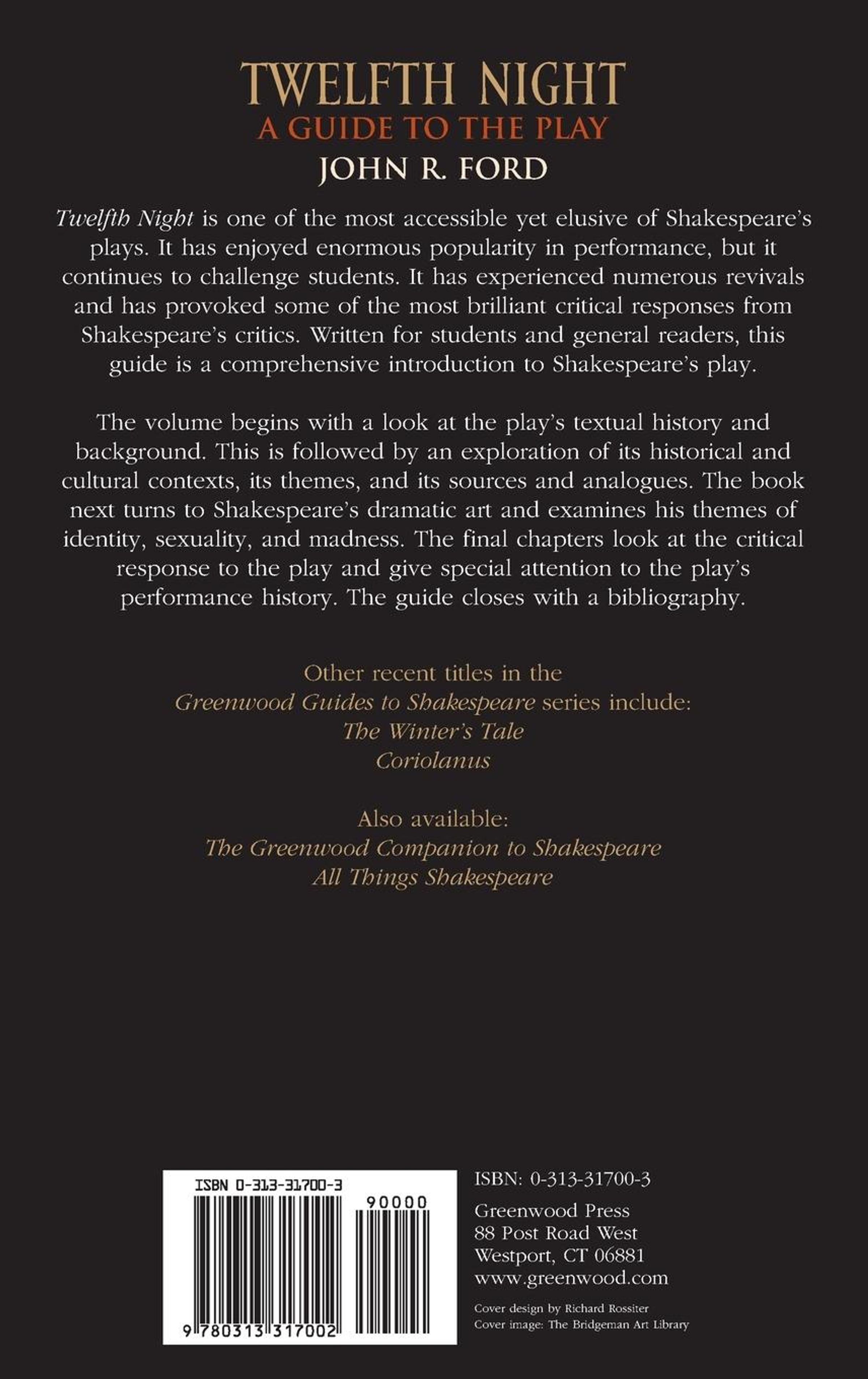 The volume begins with a look at the play's textual history. This is followed by an exploration of its historical and cultural contexts and its sources and analogues. The book next turns to Shakespeare's dramatic art and then examines his themes of identity, sexuality, and madness. The final chapters look at the critical response to the play and give special attention to the play's performance history. The guide closes with a bibliography.