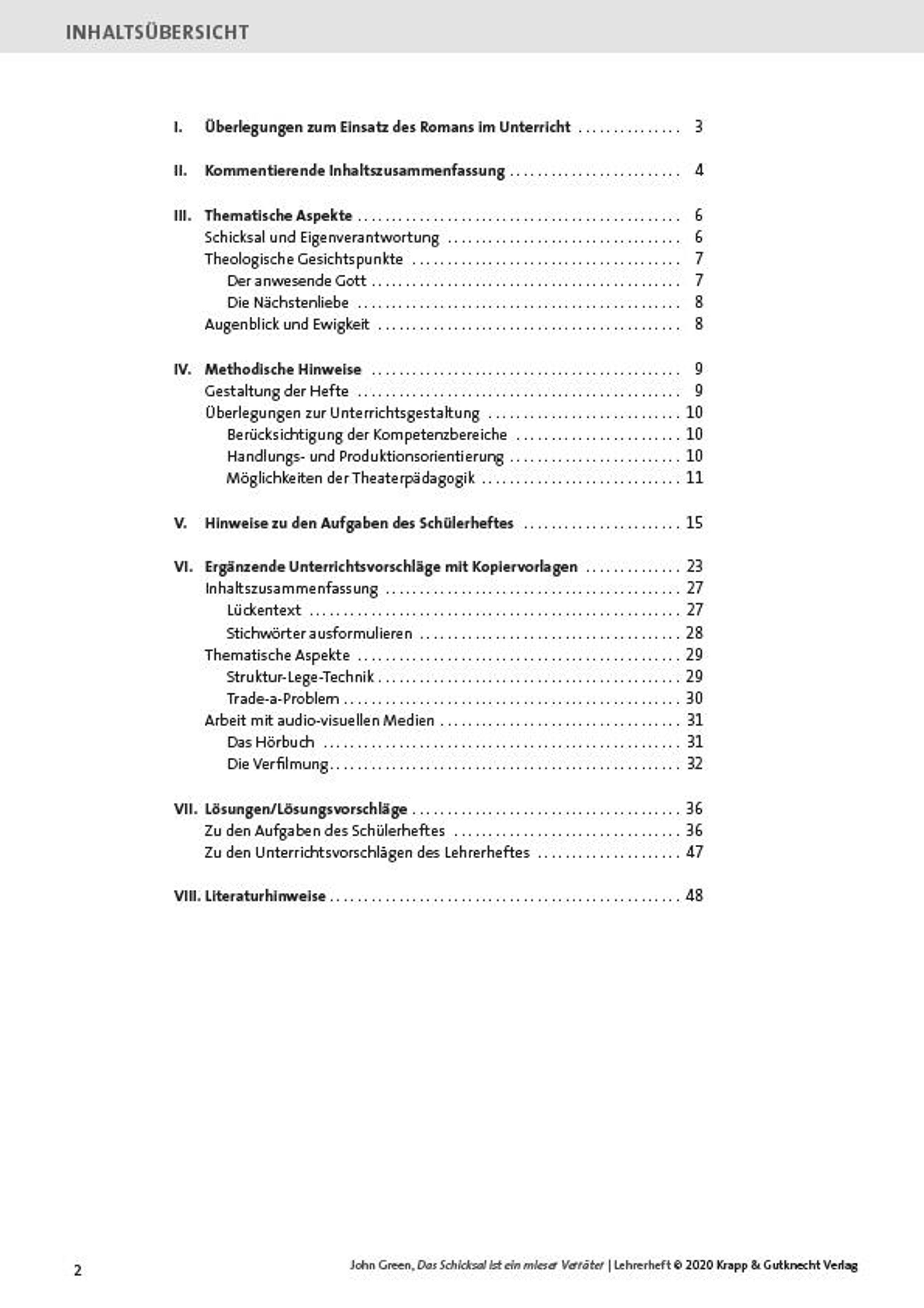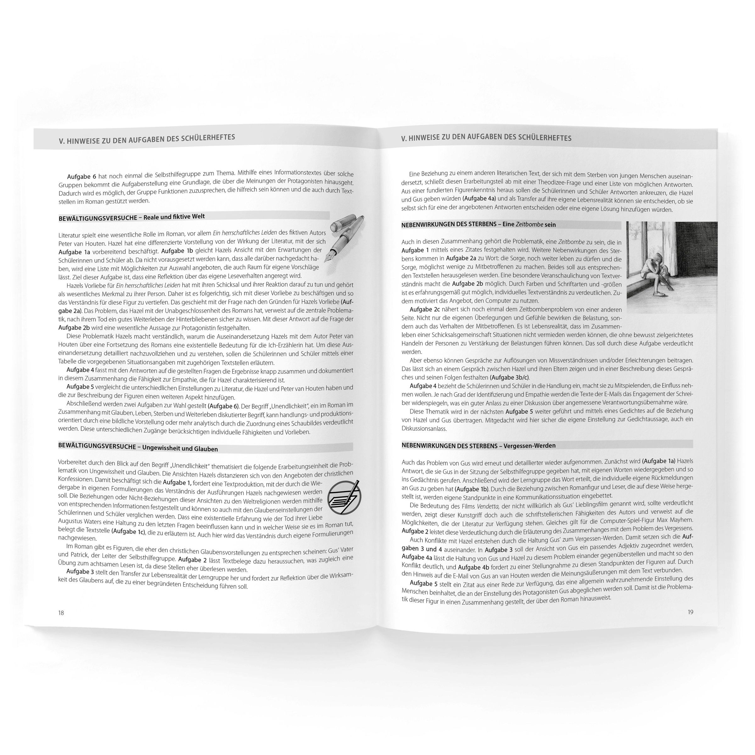 Unser Lehrerheft zum Schülerarbeitsheft zu Das Schicksal ist ein mieser Verräter von John Green enthält nicht nur die Lösungen der Aufgaben, sondern unterstützt bei der Planung eines abwechslungsreichen Deutschunterrichts, der Spaß an der Lektüre weckt und die Lesemotivation anregt. Das Unterrichtsmaterial enthält zusätzliche Arbeitsblätter und Unterrichtsideen zur weiteren Vertiefung der Themen.