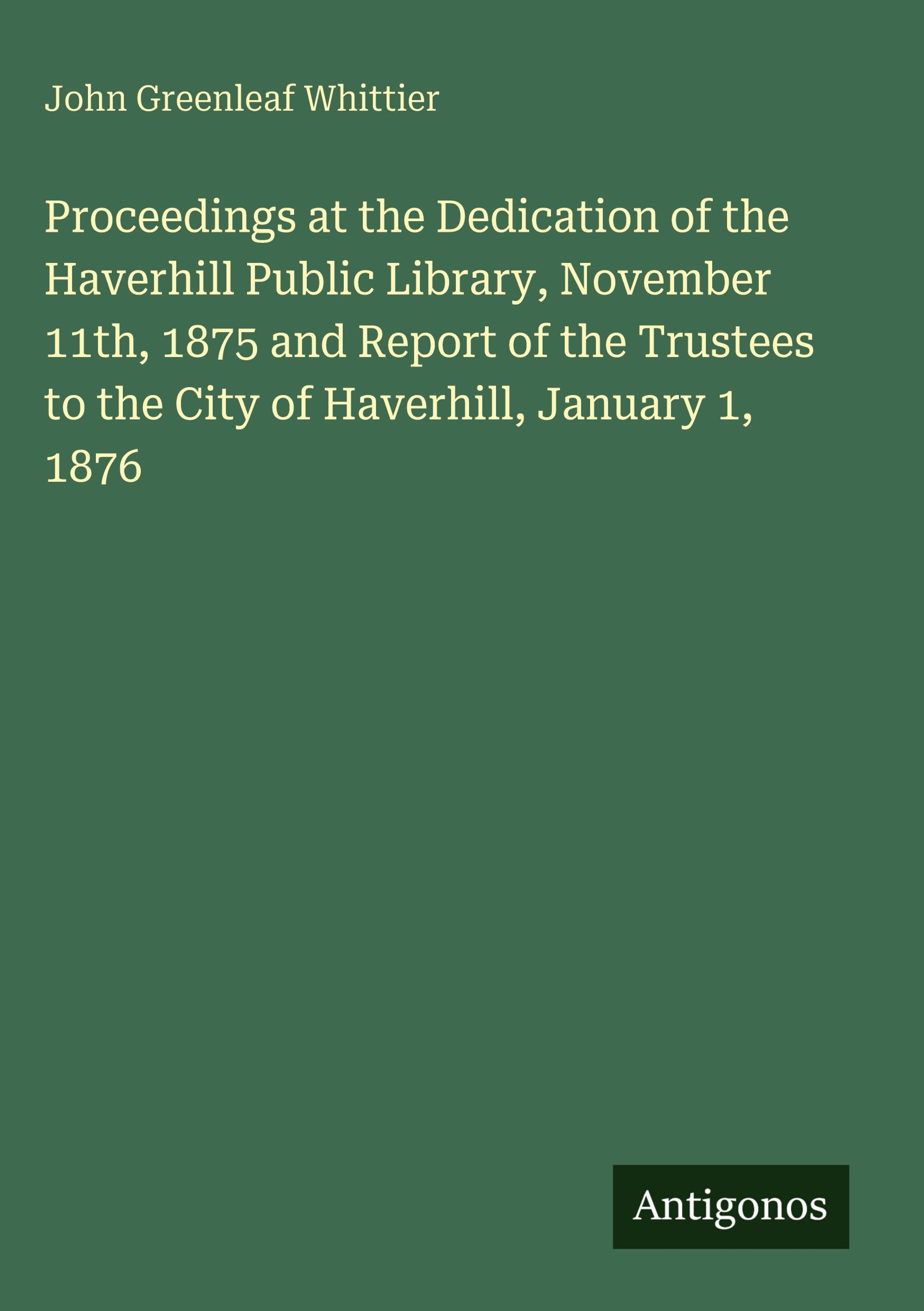 Proceedings at the Dedication of the Haverhill Public Library, November 11th, 1875 and Report of the Trustees to the City of Haverhill, January 1, 1876