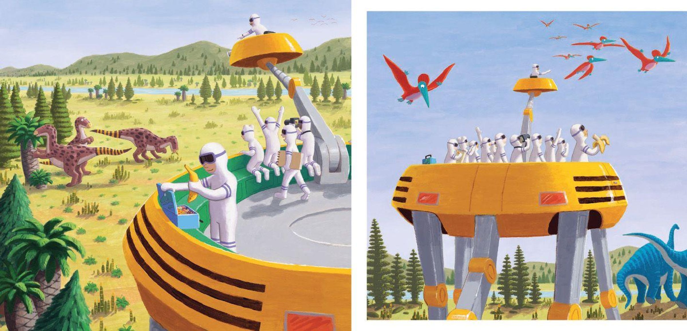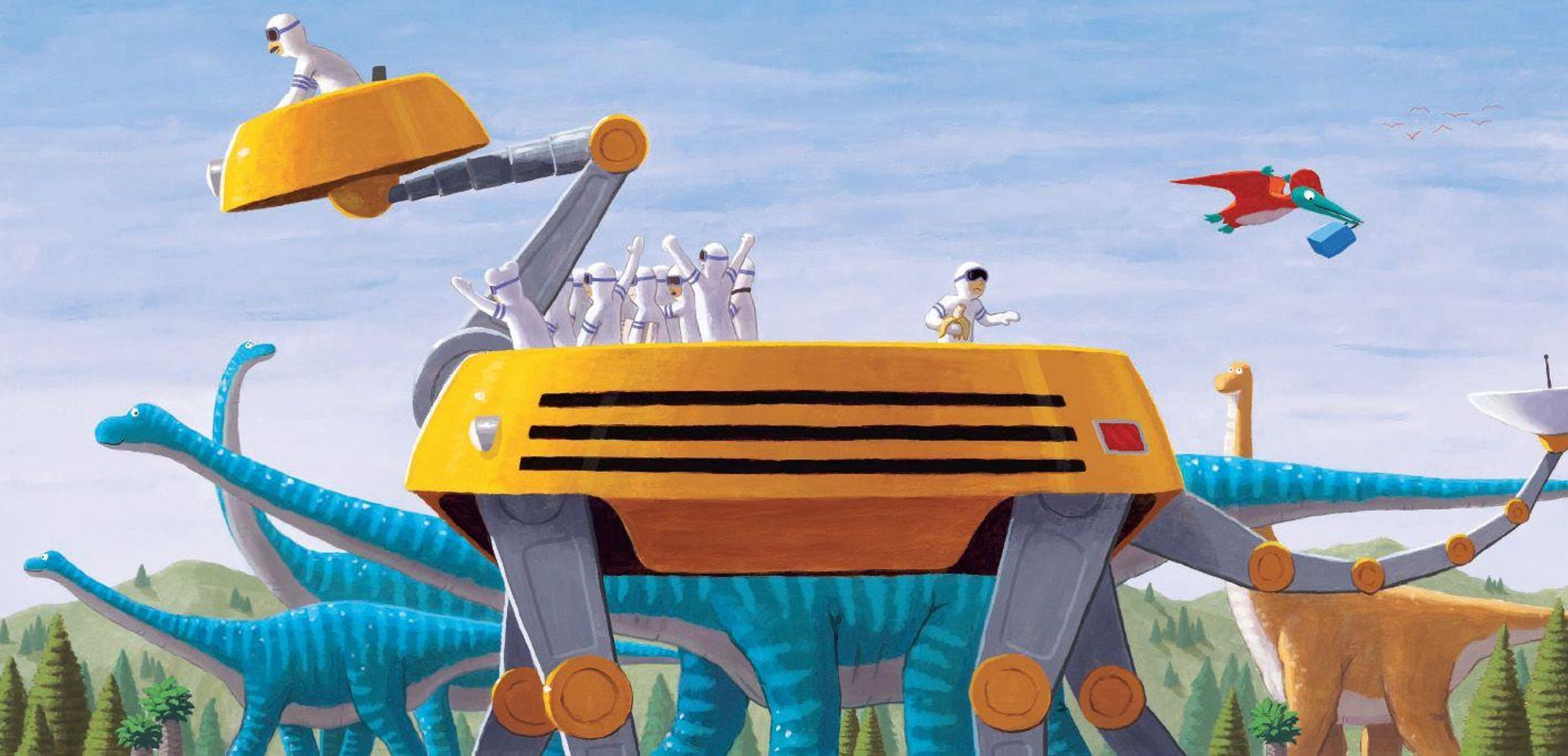 Bereits drei Ausflüge hat die Schulklasse absolviert: zuerst einen spektakulären Ausflug zum Mond, anschließend einen Besuch Tief im Ozean und dann einen Flug auf Die Vulkaninsel. Nun reisen sie mit einer Zeitmaschine in die Urzeit! Als ein Schüler dort seine Lunchbox zu früh öffnet, klaut ein Flugsaurier sie ihm und das Abenteuer nimmt seinen Lauf! John Hares Geschichte wird erneut nur über Bilder und Gesten erzählt und wieder funktioniert das wunderbar. Es fasziniert, wie genau er Stimmungen auch ohne Mimik vermittelt. Die Fangemeinde, die er sich damit erobert hat, ist groß. Weltweit - und ab sofort auch unter Dinosauriern!