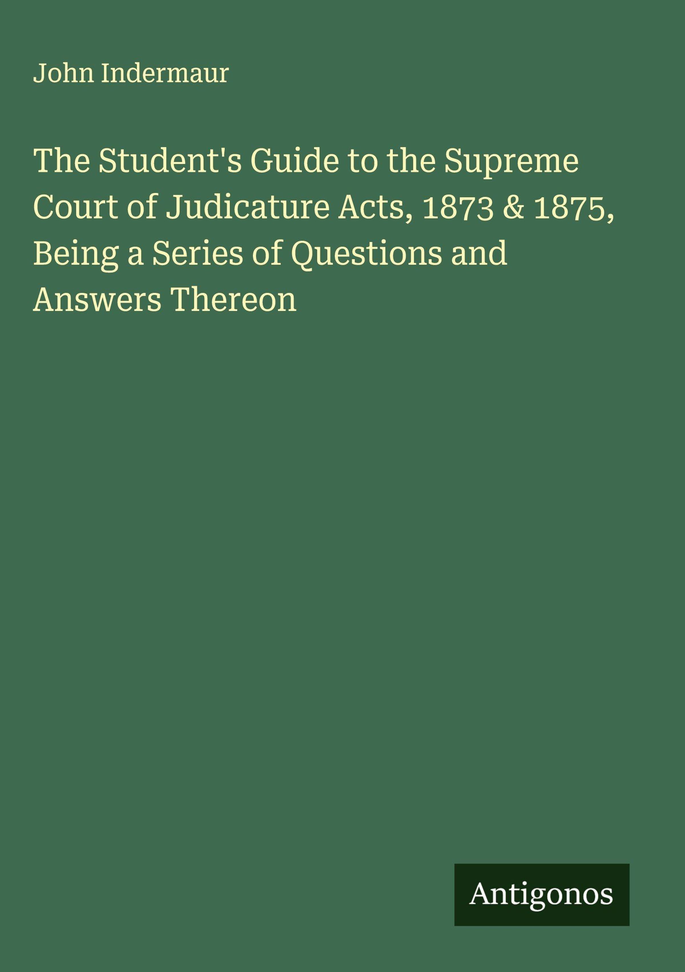 The Student's Guide to the Supreme Court of Judicature Acts, 1873 & 1875, Being a Series of Questions and Answers Thereon