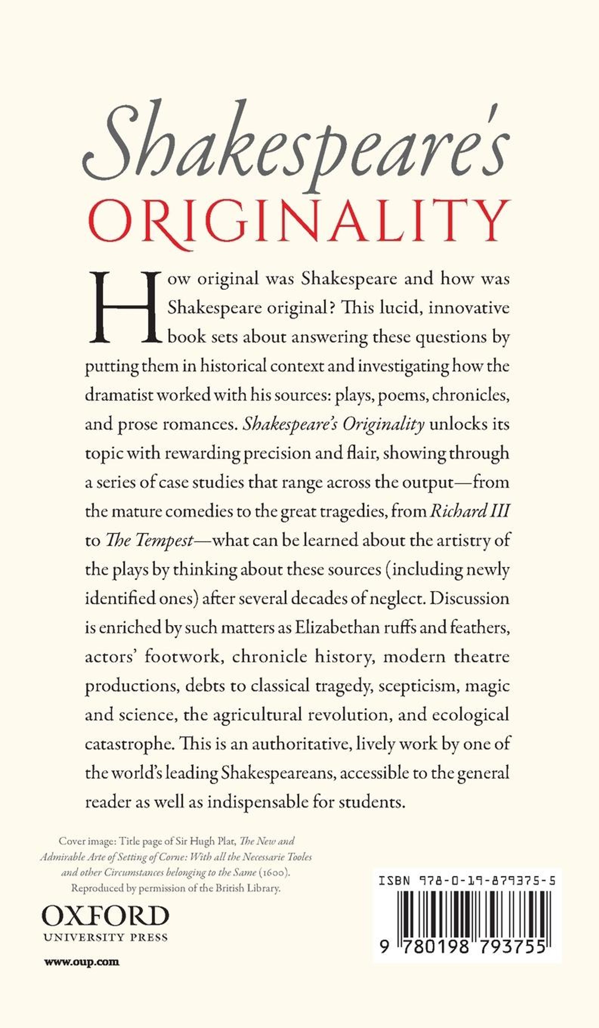 This compact, engaging book puts Shakespeare's originality in historical context and looks at how he worked with his sources: the plays, poems, chronicles and romances on which his own plays are based.