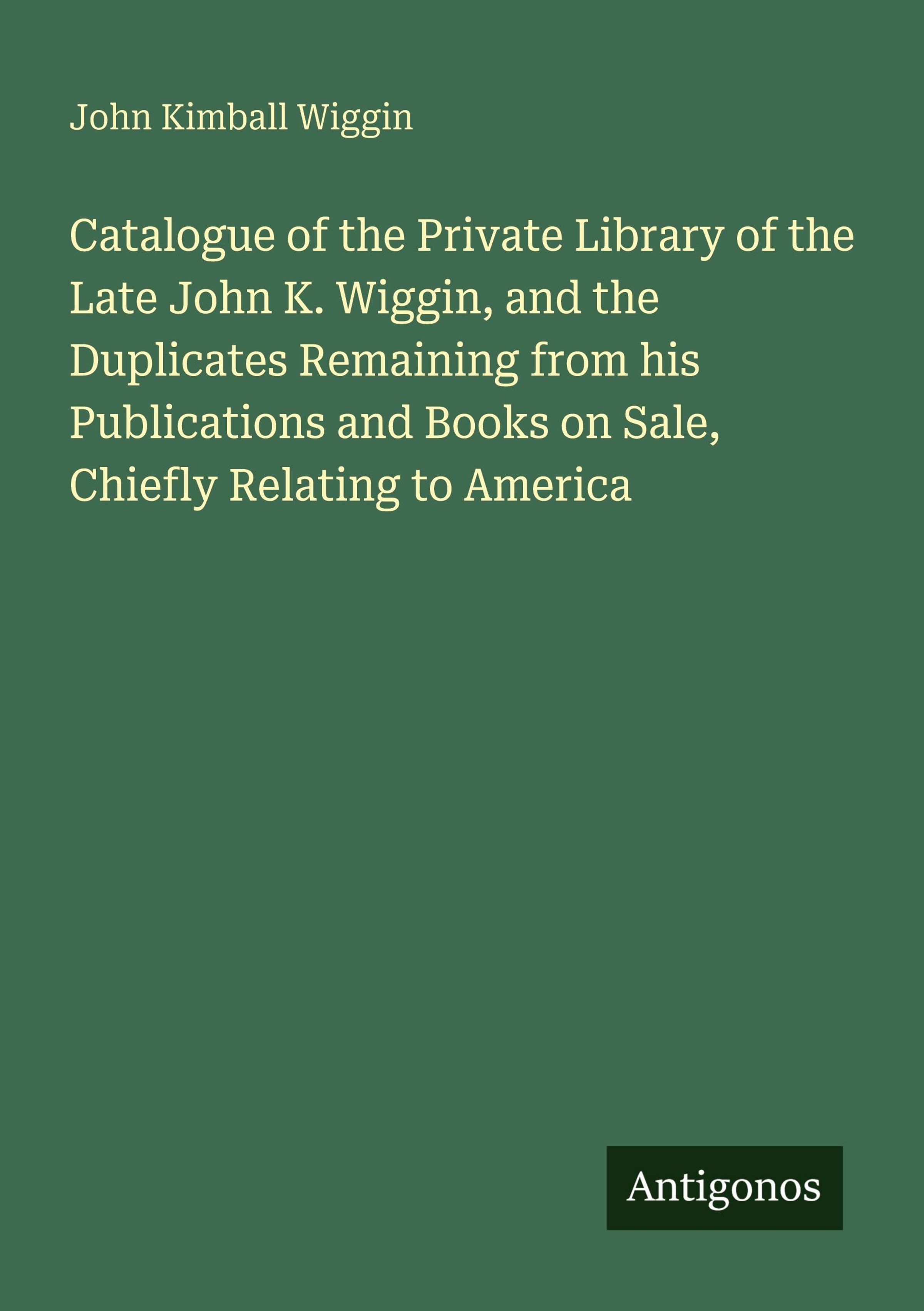 Catalogue of the Private Library of the Late John K. Wiggin, and the Duplicates Remaining from his Publications and Books on Sale, Chiefly Relating to America