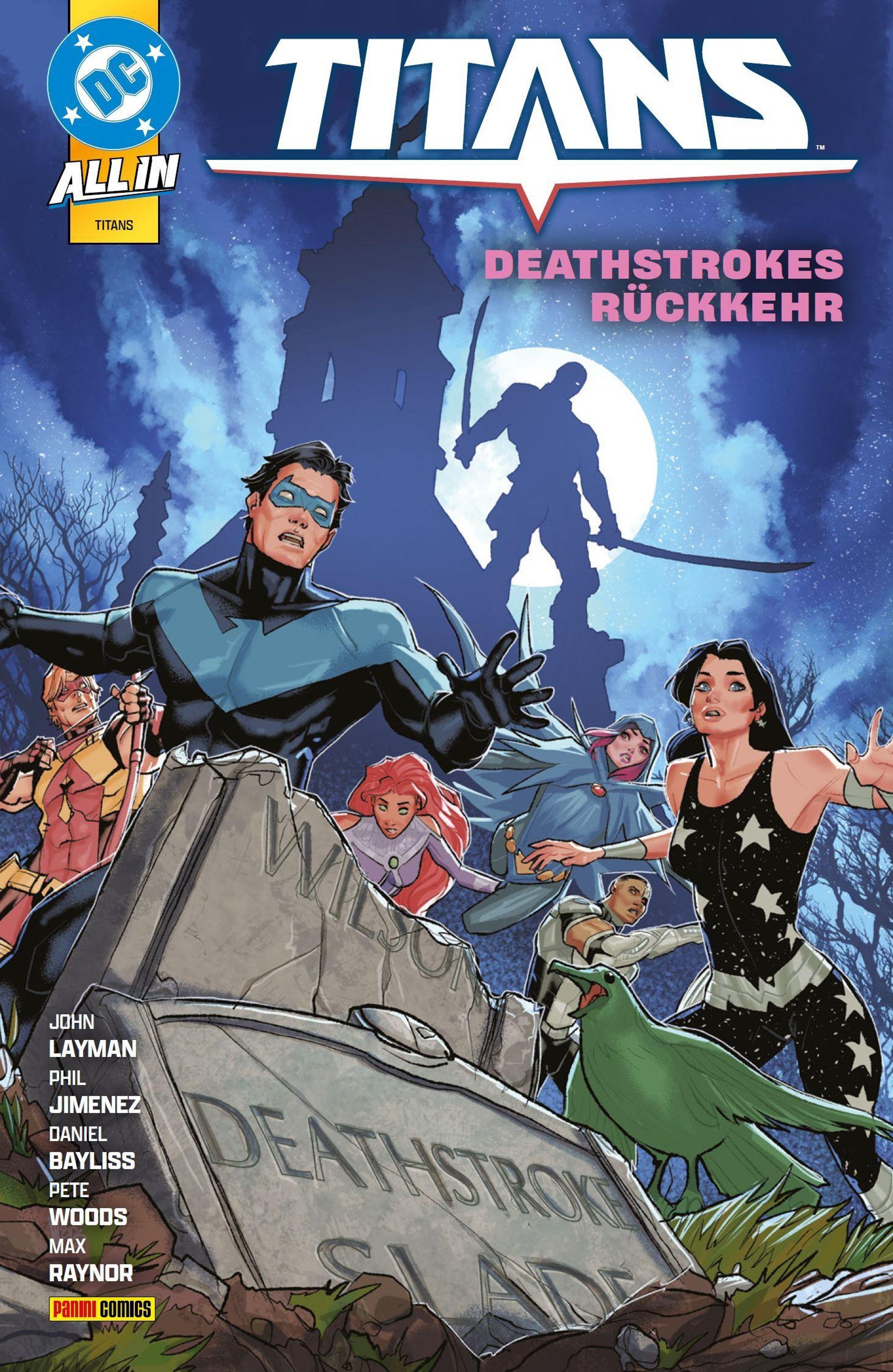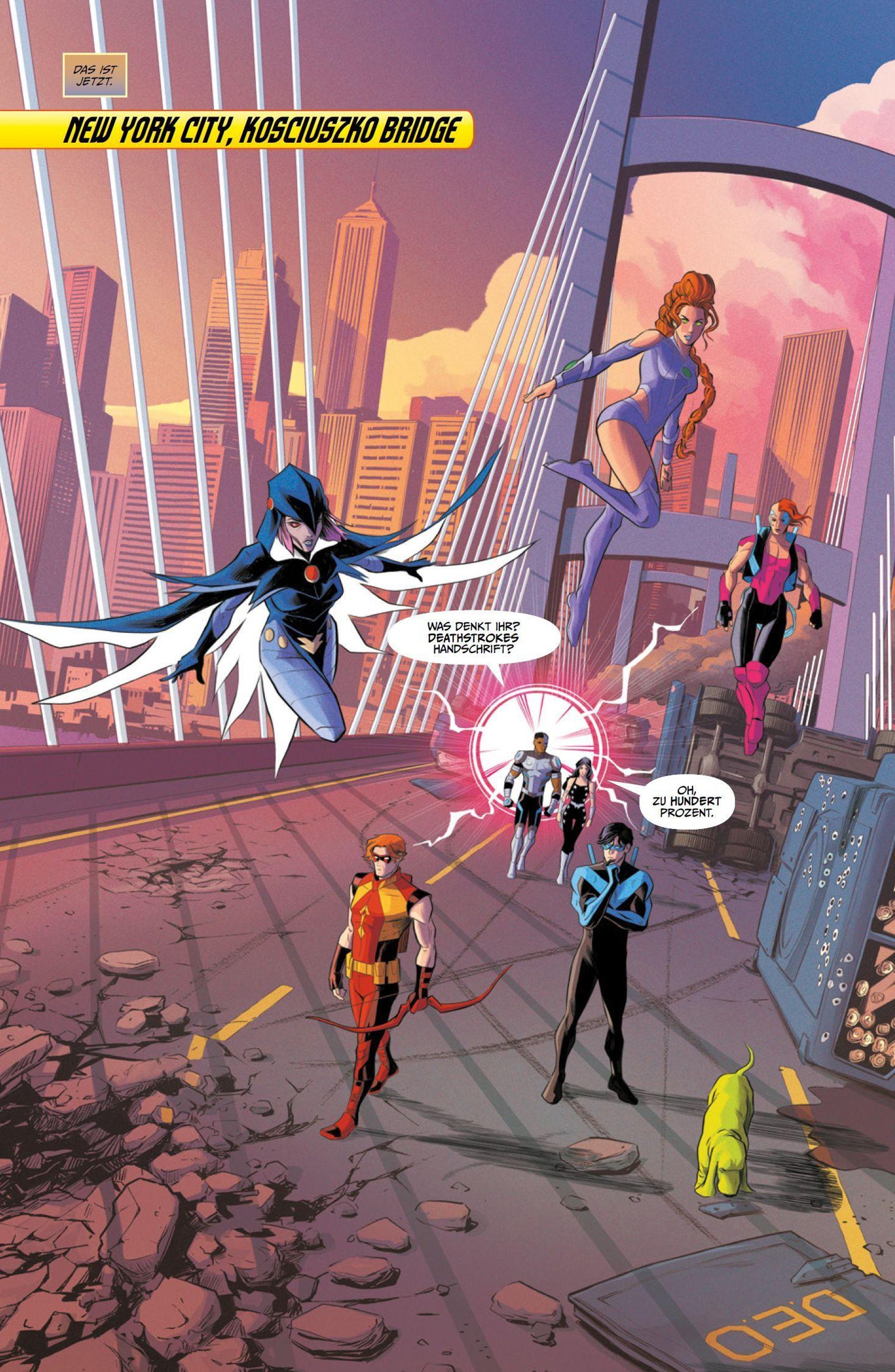 DER TÖDLICHE ANGRIFF DES CRIME SYNDICATES! Deathstroke ist zurück! Und der mörderischste Gegner der Titans hat ein ganzes Team an Verbündeten um sich geschart, das Nightwing und die anderen Titans töten soll. Als auch noch das neueste, schier übermächtige Mitglied des Heldenteams auf Deathstrokes Seite wechselt, scheint die Niederlage der Titans besiegelt. Und für den Fall der Fälle hat Deathstroke noch ein weiteres Ass im Ärmel: die Person, die den Titans einst ihre denkwürdigste Niederlage bereitet hat!
