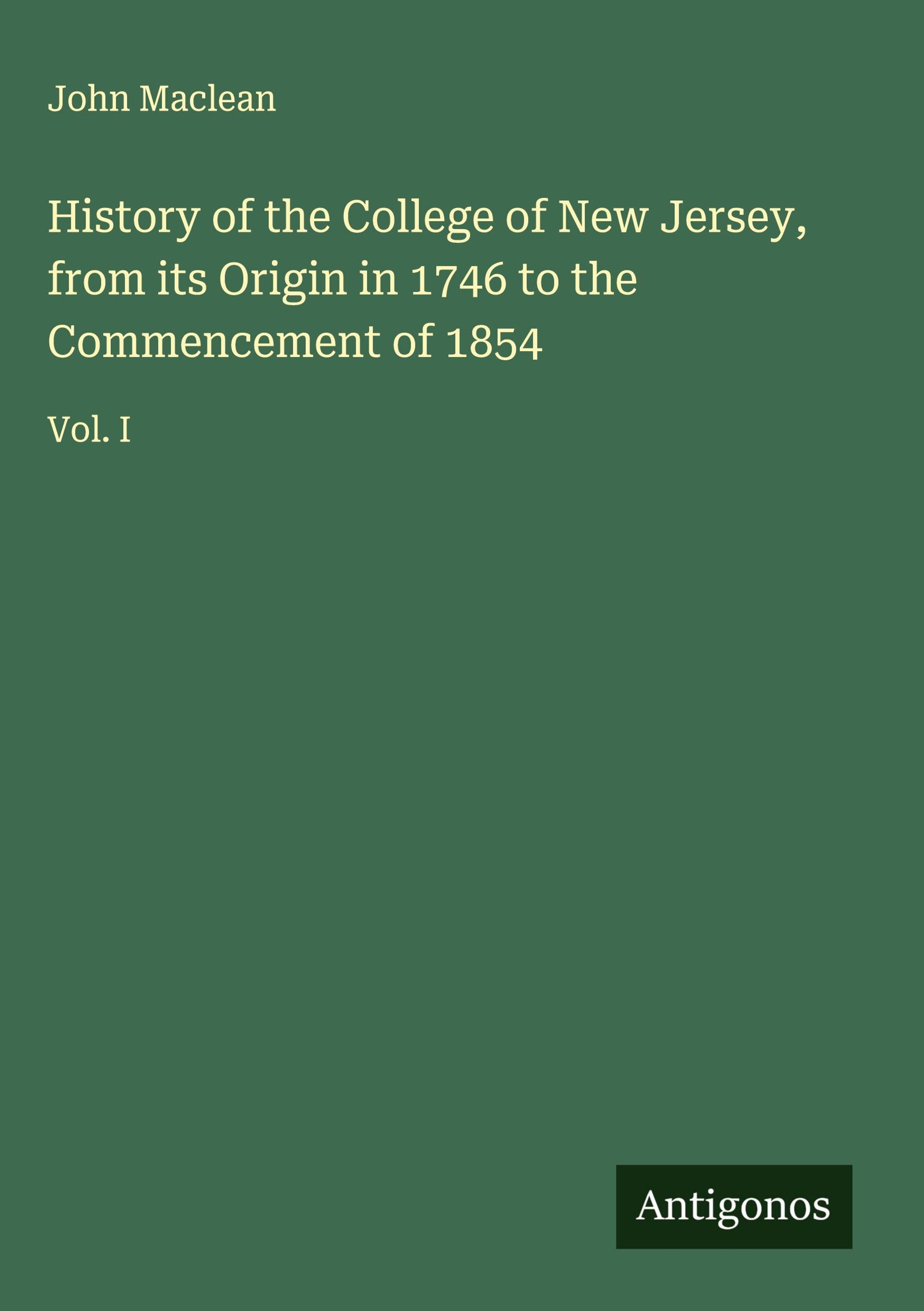 John Maclean: History of the College of New Jersey, from its Origin in 1746 to the Commencement of 1854, Gebunden