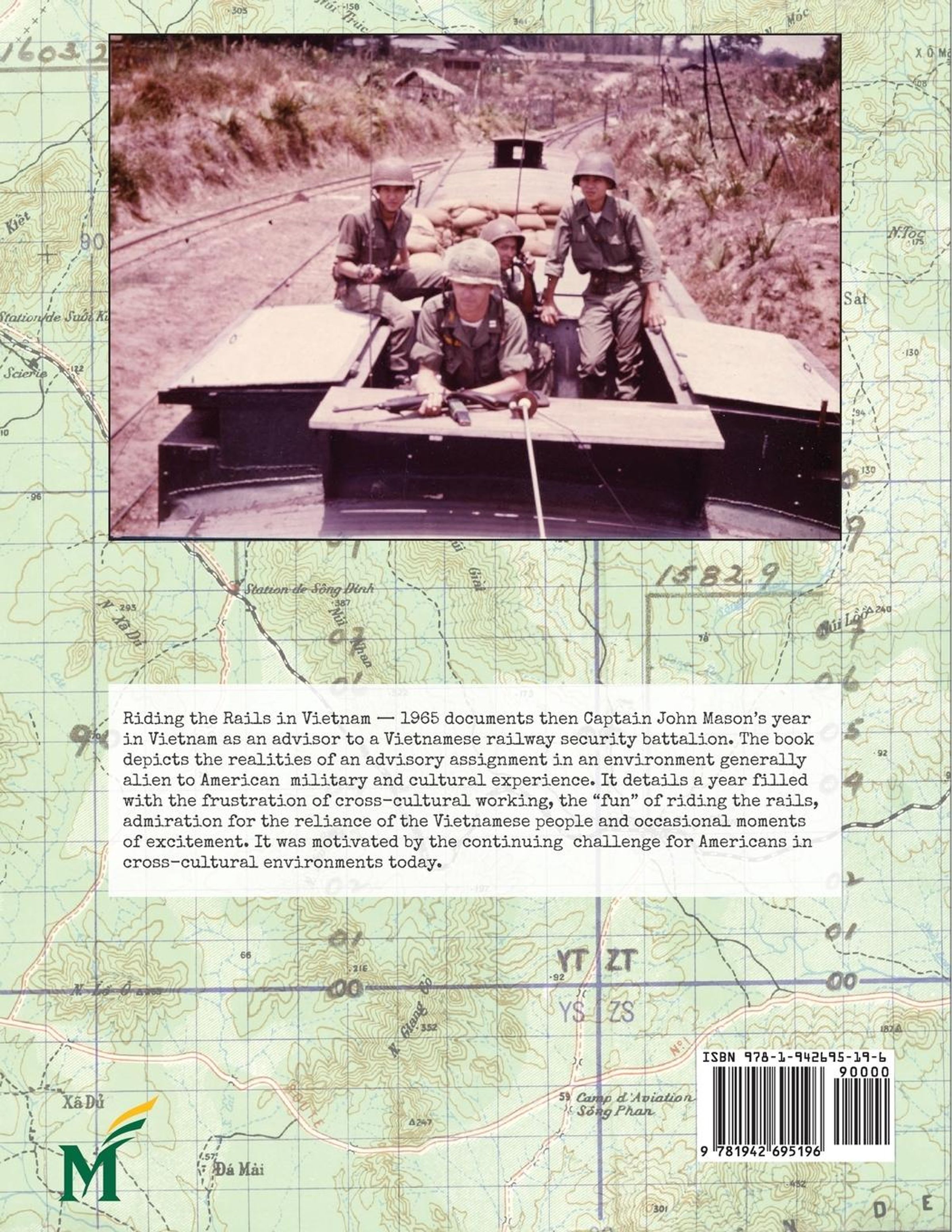 Riding the Rails in Vietnam --- 1965 documents then Captain John Mason's year in Vietnam as an advisor to a Vietnamese railway security battalion. The book depicts the realities of an advisory assignment in an environment generally alien to American military and cultural experience. It details a year filled with the frustration of cross-cultural working, the "fun" of riding the rails, admiration for the reliance of the Vietnamese people and occasional moments of excitement. It was motivated by the continuing challenge for Americans in cross-cultural environments today.