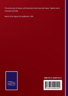 Reprint of the original, first published in 1864. The construction of clauses, with illustrations from Cicero and Caesar. Together with a vocabulary and index.