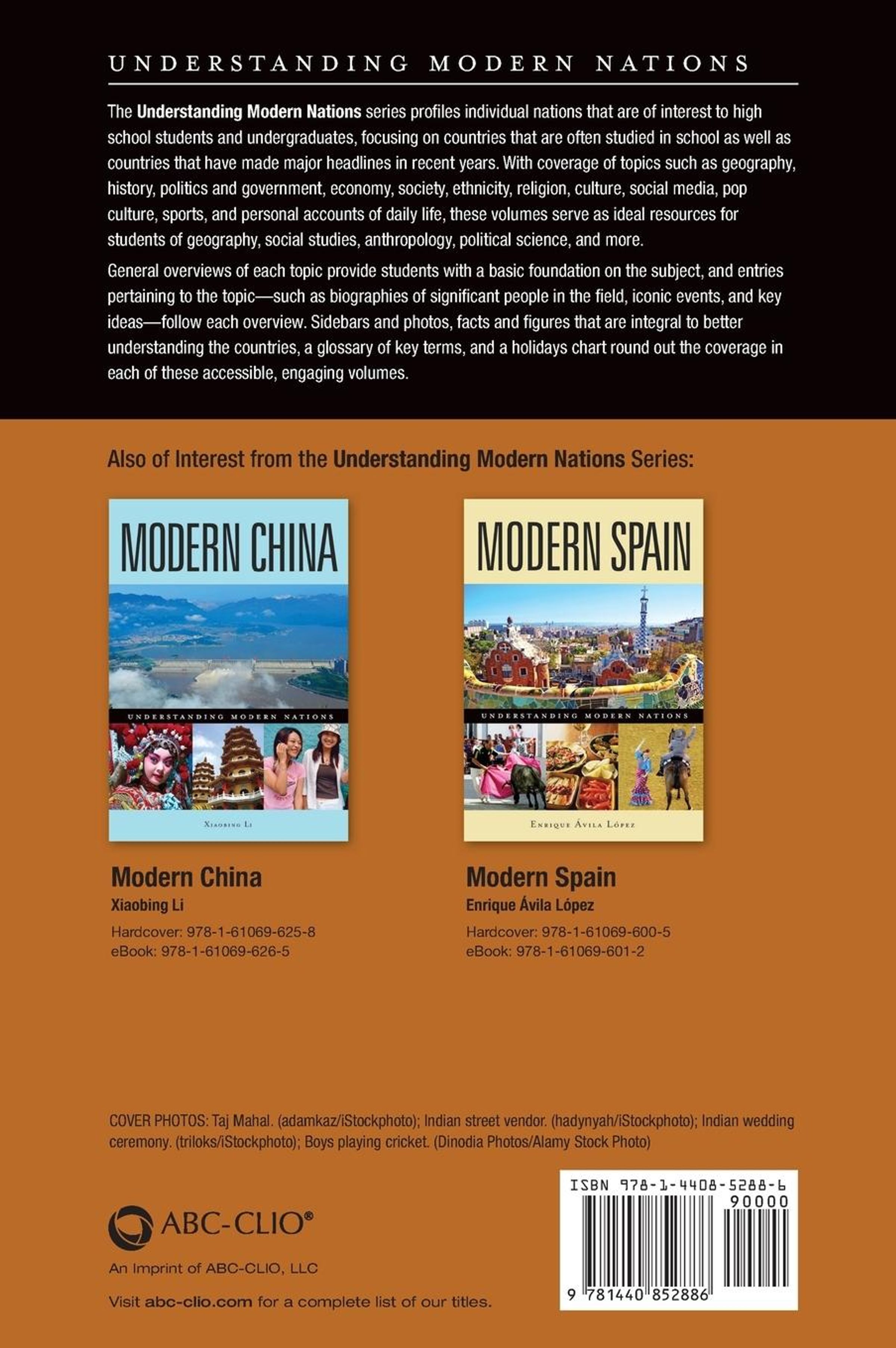 Modern Indian , an addition to the Understanding Modern Nations series, is an in-depth and interdisciplinary encyclopedia. While many books on life in India exist today, this volume is unique as a concise, accessible overview of multiple aspects of Indian society and history. It will be a useful background or supplemental text for anyone interested in modern Indian life and culture.