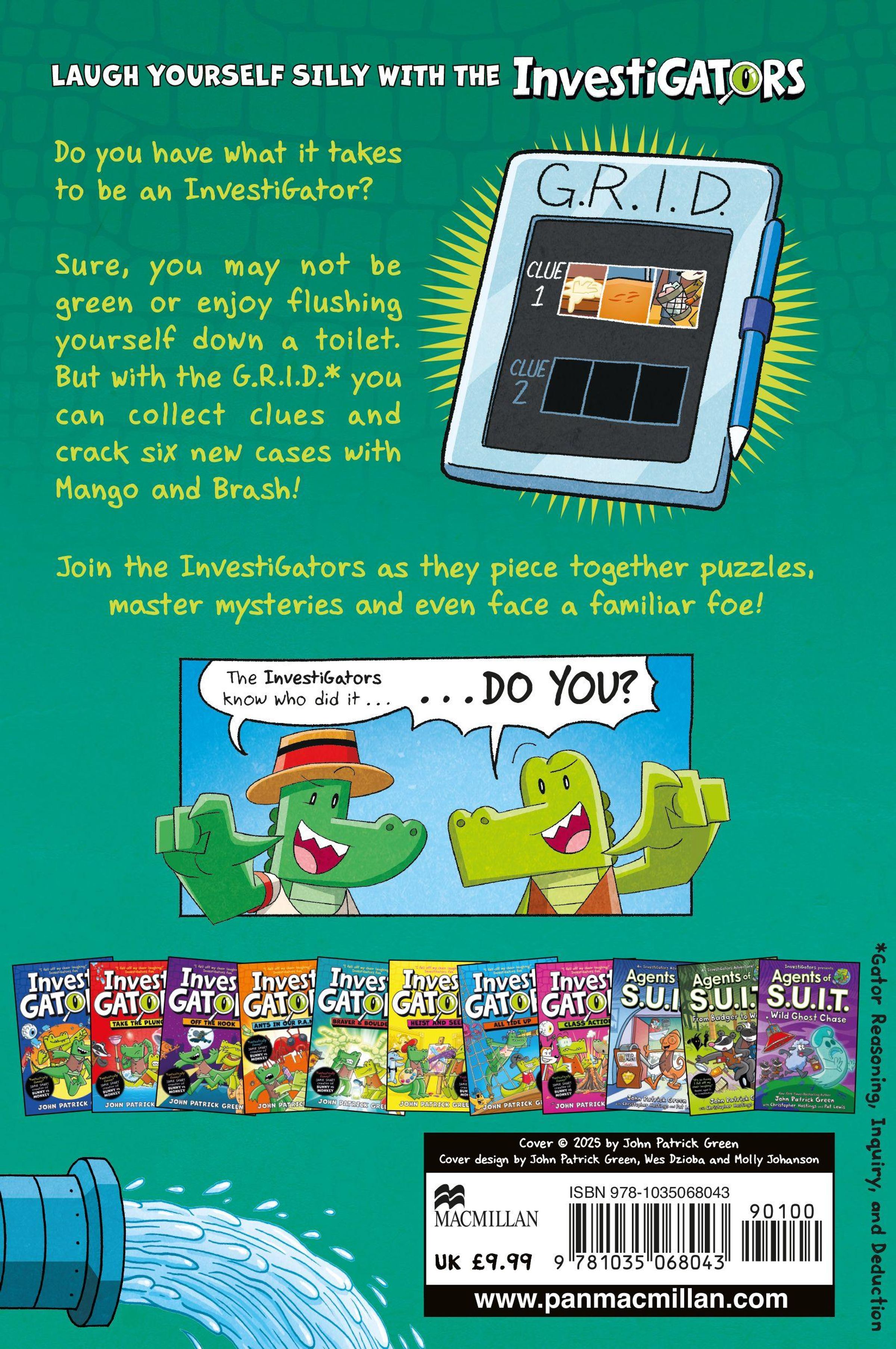 Collect all the books in the InvestiGators series by John Patrick Green: InvestiGators ,Take the Plunge ,Off the Hook and tons more. Don't miss Agents of S. U.I. T., the spin-off series featuring Mango and Brash's colourful coworkers.
