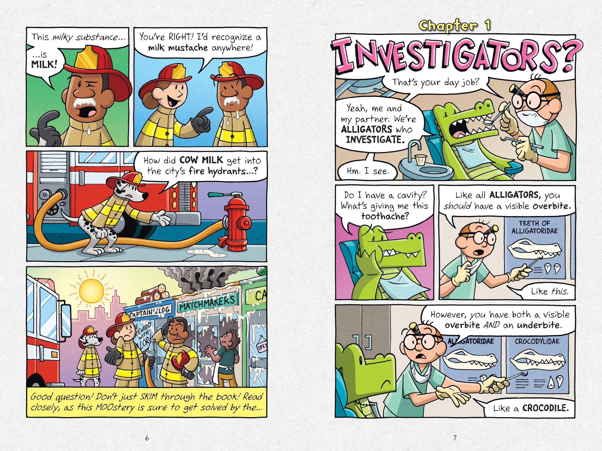 The InvestiGators' latest case is a dairy disaster! The city's water supply has been replaced with milk and the newest feline agents, the InvestiGatos, don't seem to be complaining. What's with the simian scientists and why is the rain green?! All will be revealed in this sticky volume of InvestiGators!