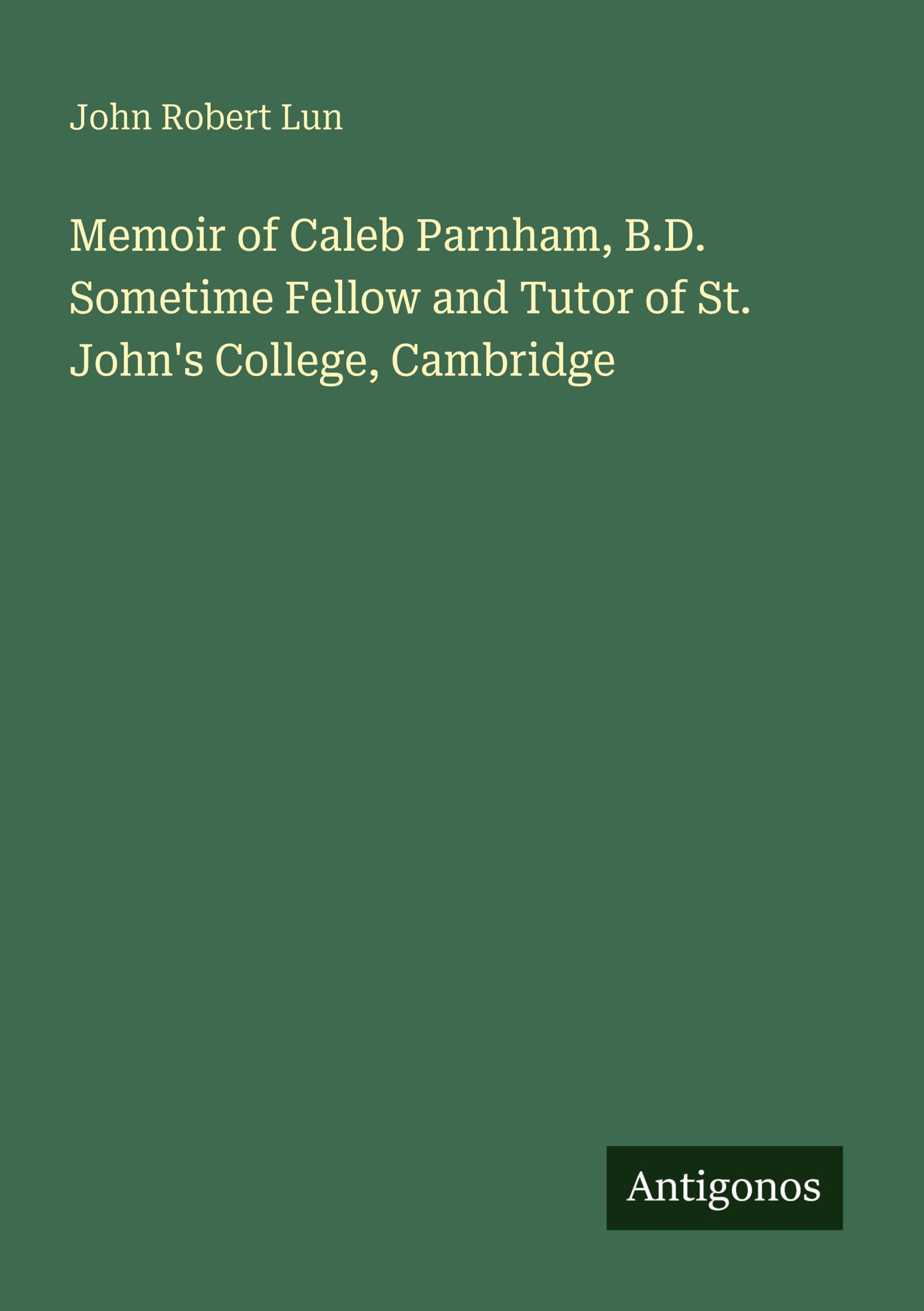 John Robert Lun: Memoir of Caleb Parnham, B.D. Sometime Fellow and Tutor of St. John's College, Cambridge, Kartoniert / Broschiert