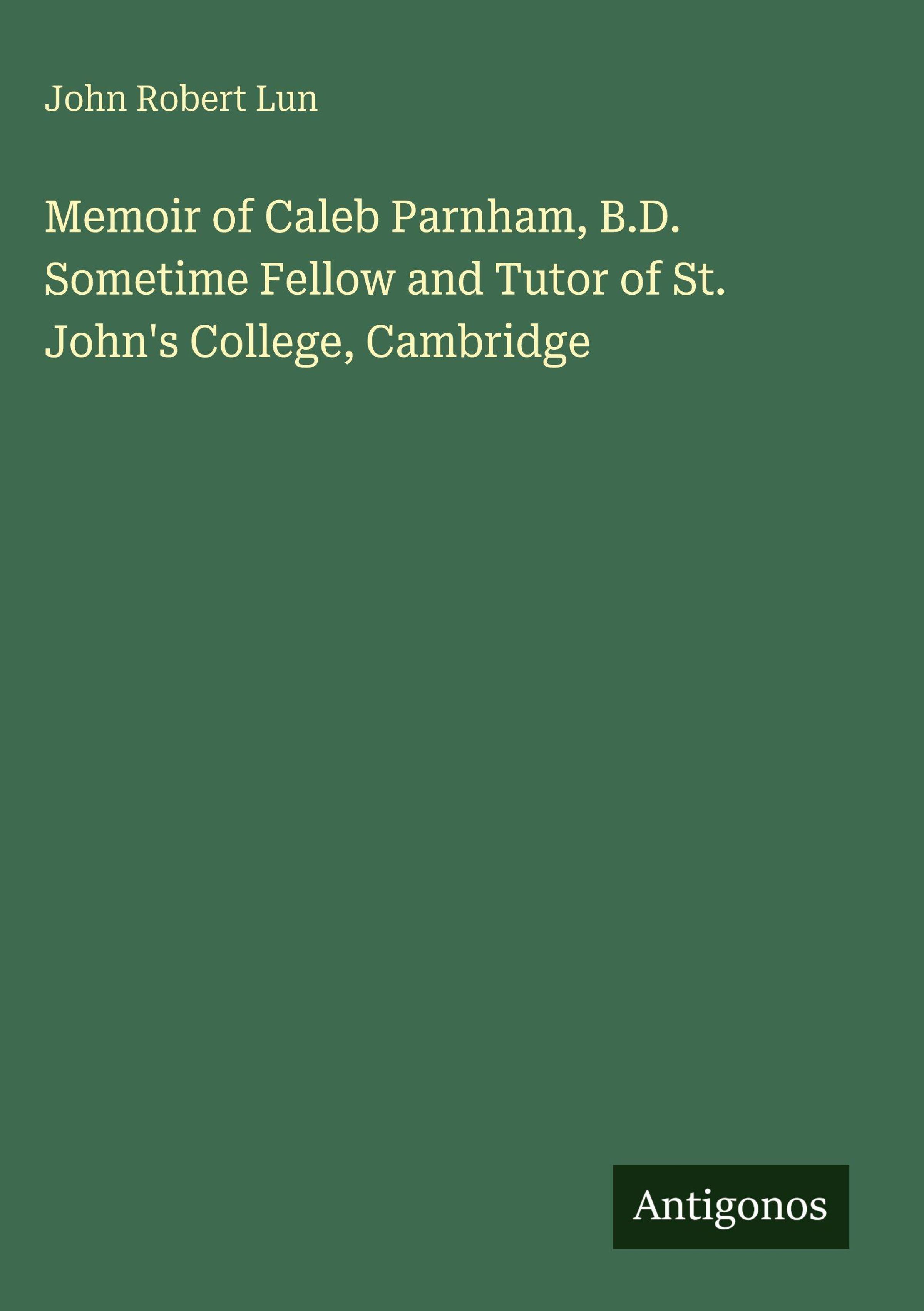 John Robert Lun: Memoir of Caleb Parnham, B.D. Sometime Fellow and Tutor of St. John's College, Cambridge, Gebunden