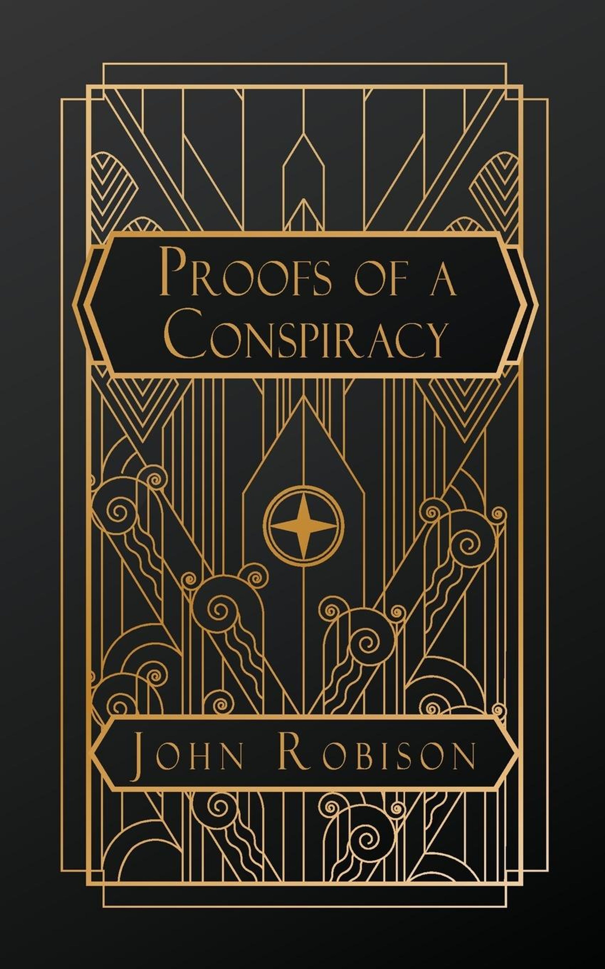 "Proofs of a Conspiracy", "John Robison"; Art déco-Design in Gold auf schwarzem Hintergrund, ornamental und geometrisch., Buch