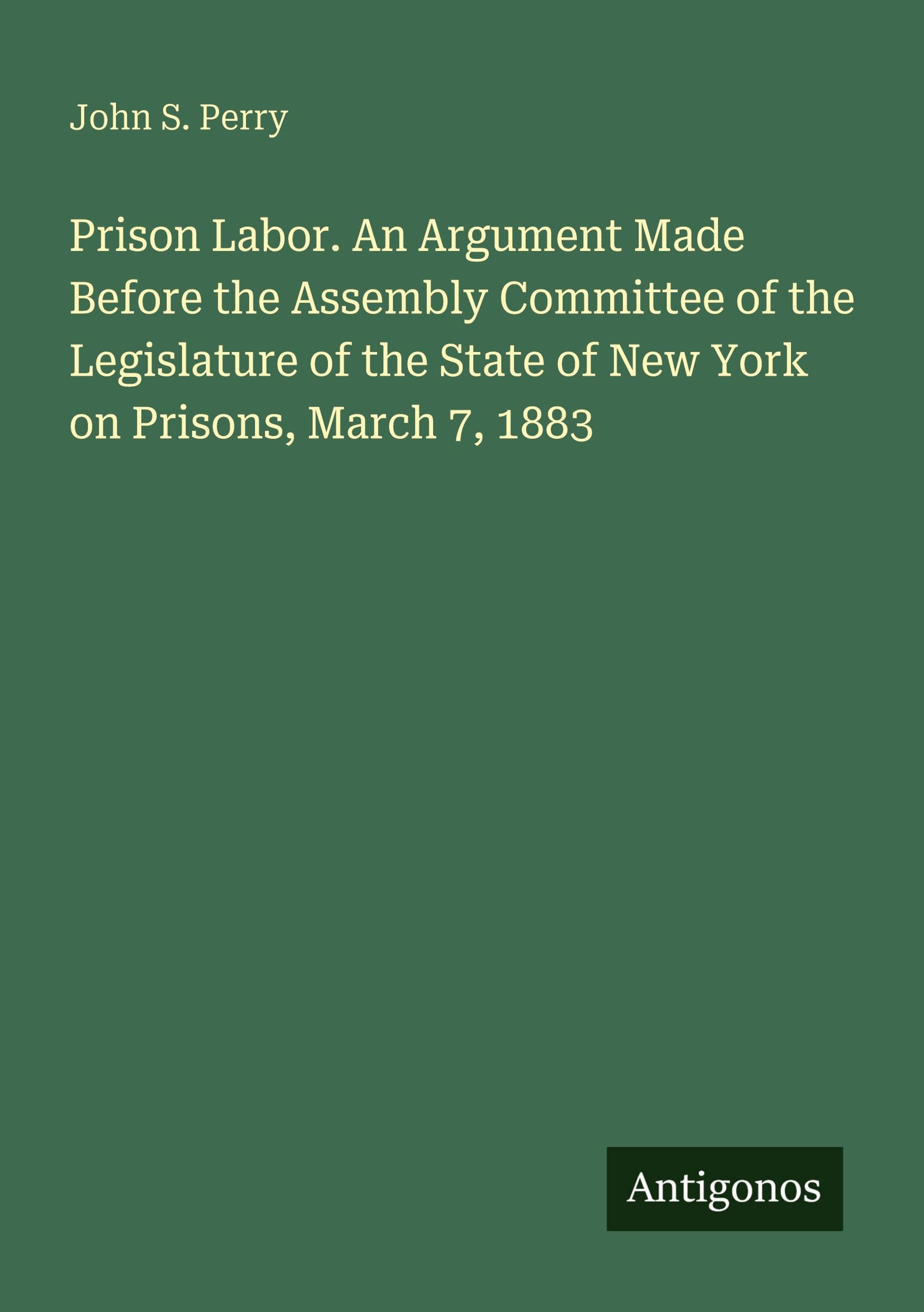 Prison Labor. An Argument Made Before the Assembly Committee of the Legislature of the State of New York on Prisons, March 7, 1883