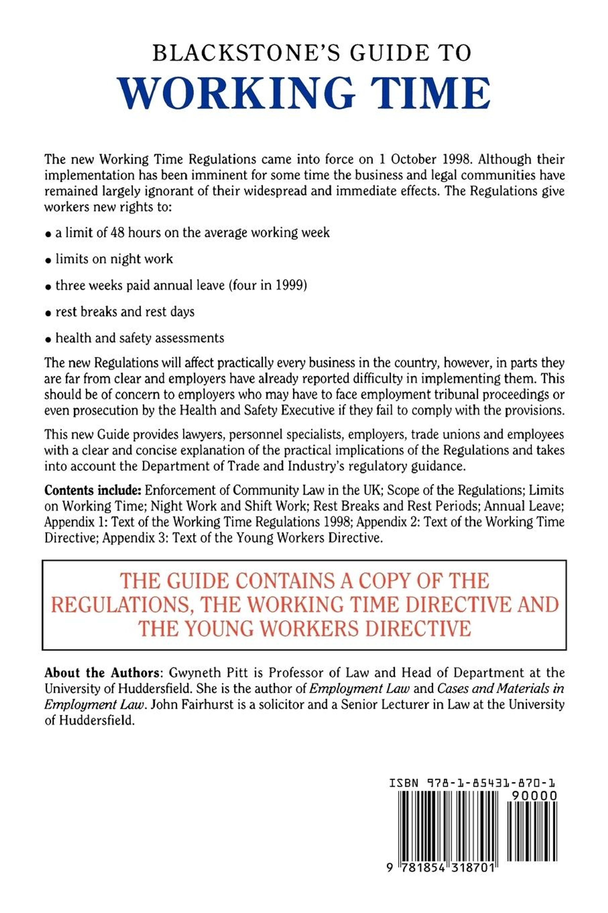 John (Senior Lecturer in Law Fairhurst: Working Time, Kartoniert / Broschiert