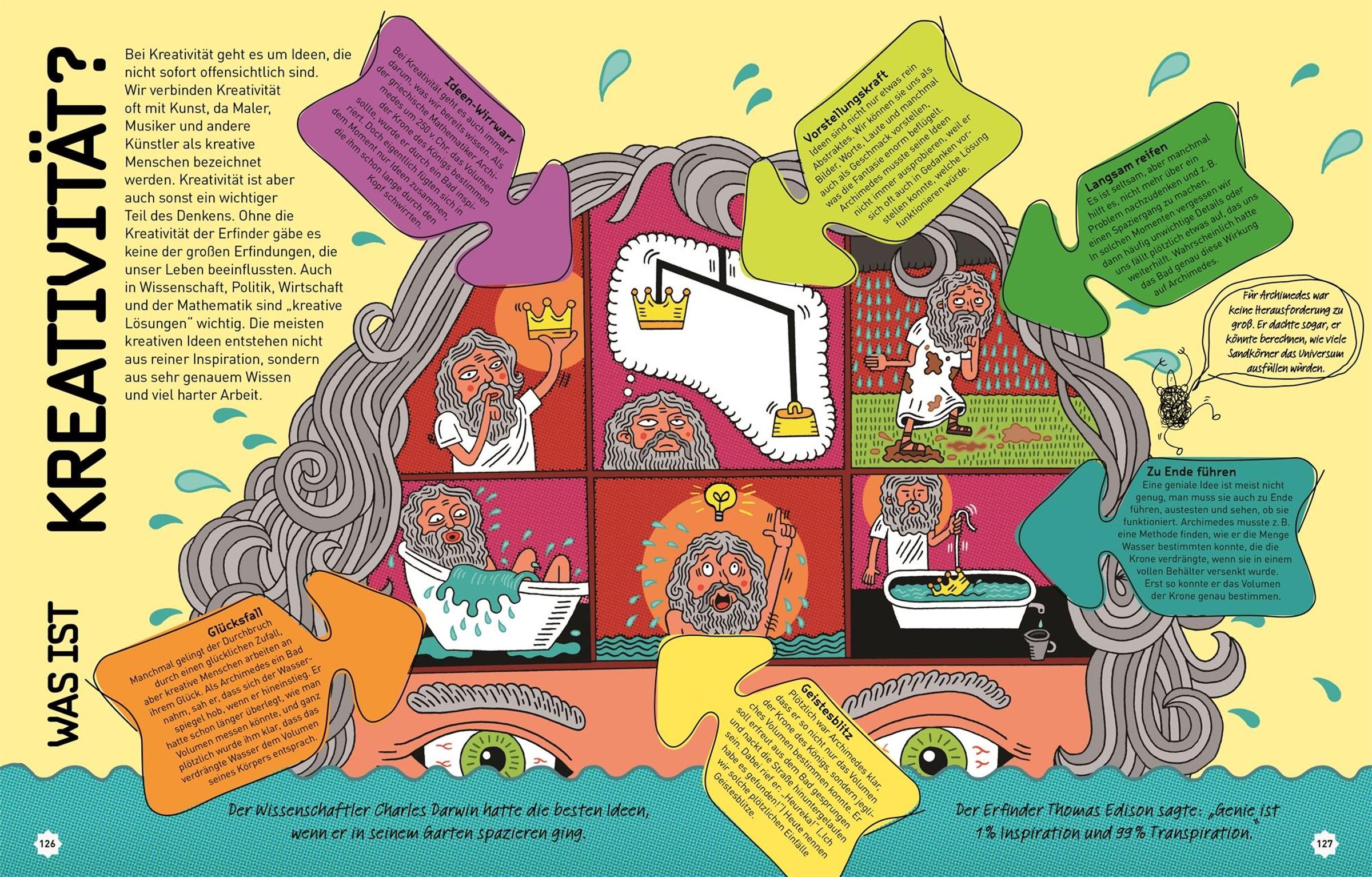 Was haben Einstein, Mozart und da Vinci gemeinsam? Sie waren Superhirne! Mit ihren Ideen haben sie die Welt verändert. Doch was passiert eigentlich im Oberstübchen, wenn wir kreativ sind? Wie funktioniert das Gehirn , wenn wir logisch denken oder Informationen verarbeiten wollen? Dieses witzige Wissensbuch erklärt das Wunderwerk der Natur mit spannenden Sachtexten, coolen Grafiken und lädt mit Kreativitätstechniken, Wissensrätseln und Tests ein, selbst Superhirn zu sein.