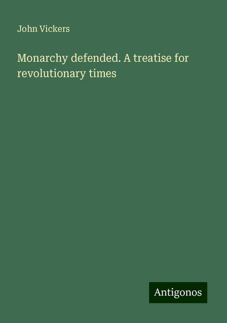 Vickers, J: Monarchy defended. A treatise for revolutionary