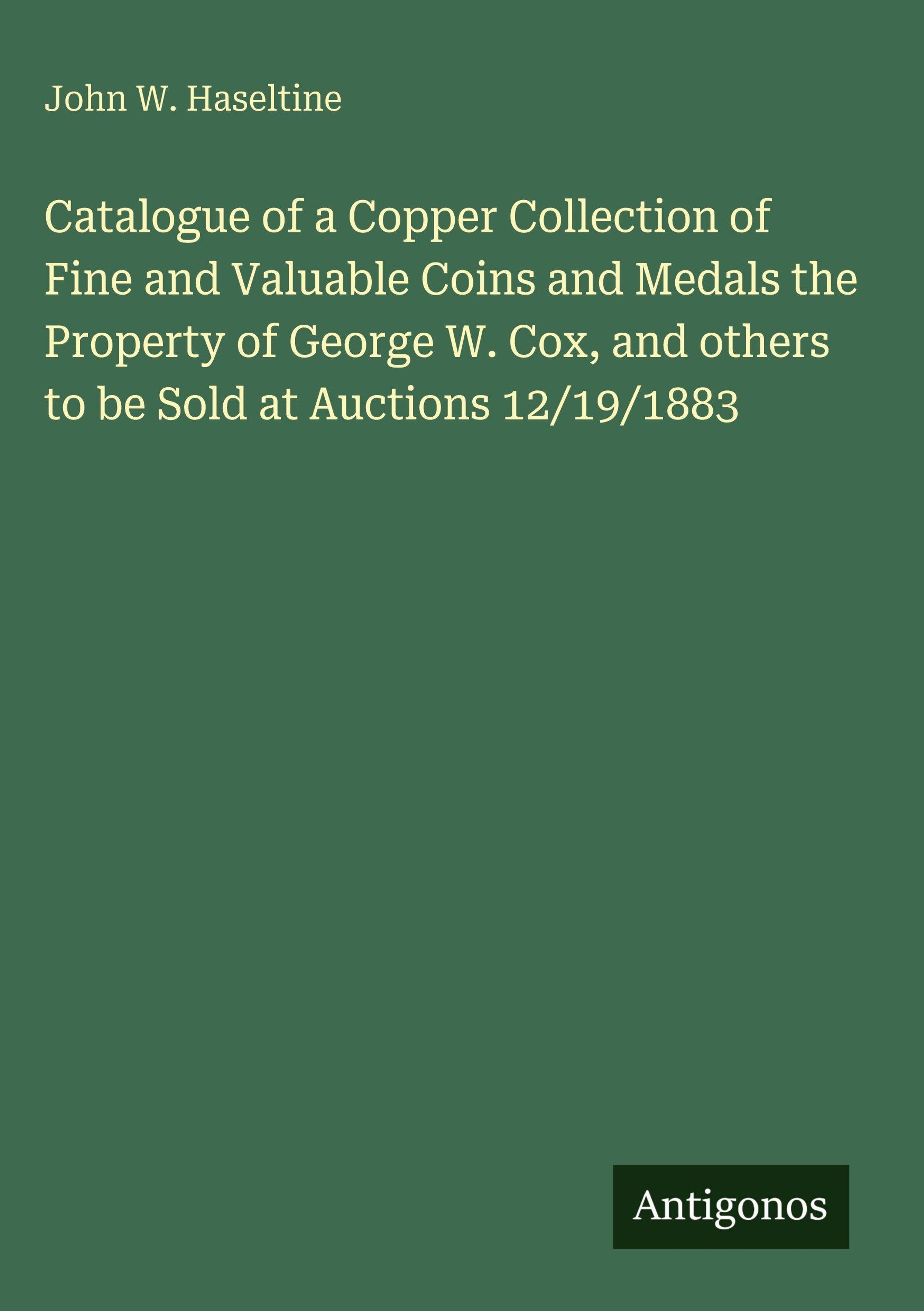 Catalogue of a Copper Collection of Fine and Valuable Coins and Medals the Property of George W. Cox, and others to be Sold at Auctions 12/19/1883