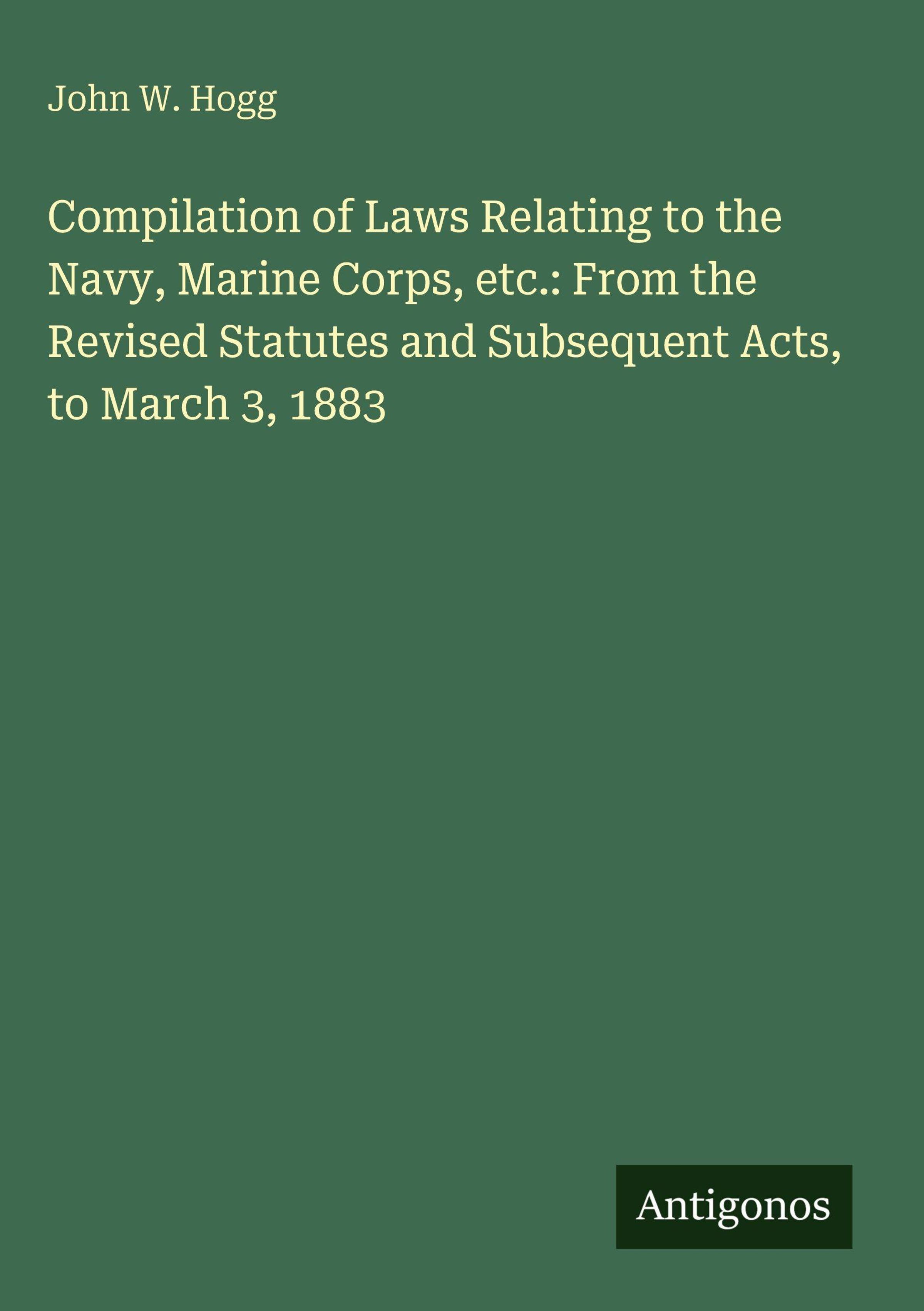 John W. Hogg: Compilation of Laws Relating to the Navy, Marine Corps, etc.: From the Revised Statutes and..., Gebunden