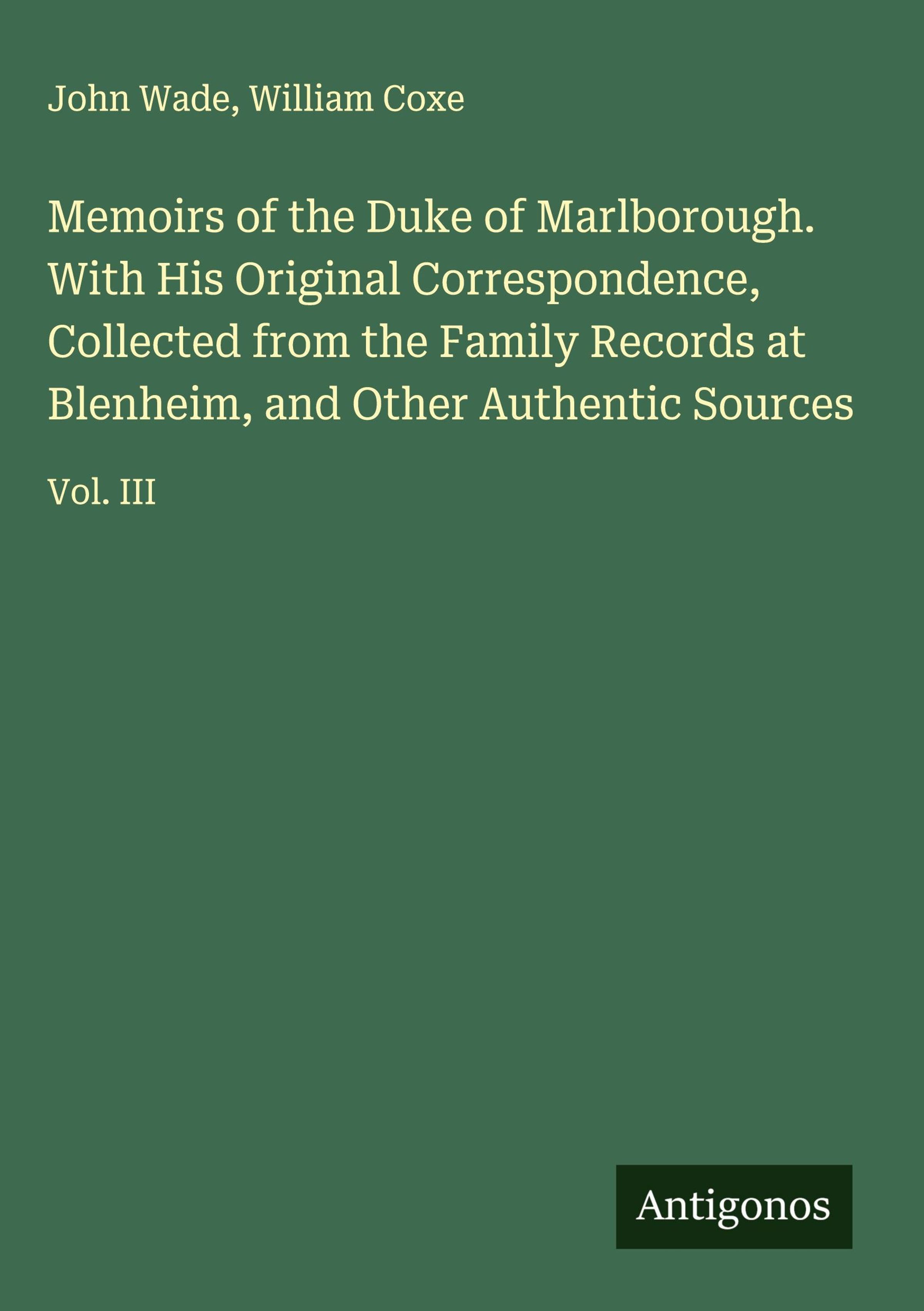 Memoirs of the Duke of Marlborough. With His Original Correspondence, Collected from the Family Records at Blenheim, and Other Authentic Sources