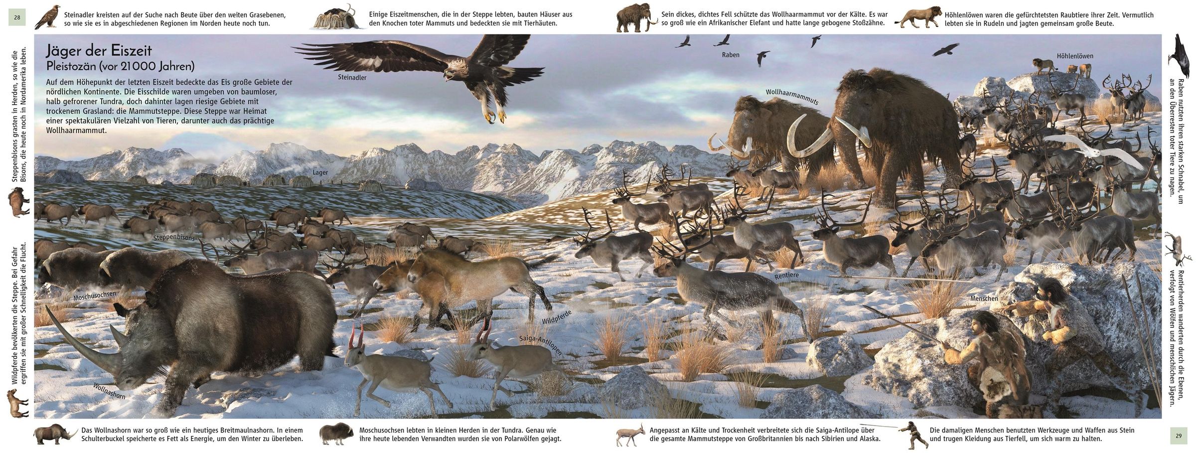 . Großer Wimmelspaß: Eigens am Computer erstellte Szenen zeigen detaillierte Landschaften aus längst vergangenen Zeiten