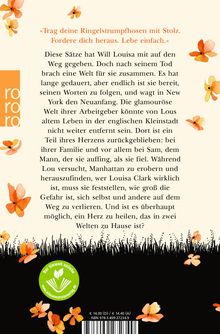 Der berührende Abschluss der Lou & Will-Trilogie, die mit dem Weltbestseller «Ein ganzes halbes Jahr» ihren Anfang nahm. «Trag deine Ringelstrumpfhosen mit Stolz. Führe ein unerschrockenes Leben. Fordere dich heraus. Lebe einfach.» Diese Sätze hat Will Louisa mit auf den Weg gegeben. Doch nach seinem Tod brach eine Welt für sie zusammen. Es hat lange gedauert, aber endlich ist sie bereit, seinen Worten zu folgen und wagt in New York den Neuanfang. Die glamouröse Welt ihrer Arbeitgeber könnte von Lous altem Leben in der englischen Kleinstadt nicht weiter entfernt sein. Dort ist ein Teil ihres Herzens zurückgeblieben: bei ihrer liebenswert chaotischen Familie und vor allem bei Sam, dem Mann, der sie auffing, als sie fiel. Während Lou versucht, New York zu erobern und herauszufinden, wer Louisa Clark wirklich ist, muss sie feststellen, wie groß die Gefahr ist, sich selbst und andere auf dem Weg zu verlieren. Und am Ende muss sie sich die Frage stellen: Ist es möglich, ein Herz zu heilen, das in zwei Welten zuhause ist?Biografie (Jojo Moyes)