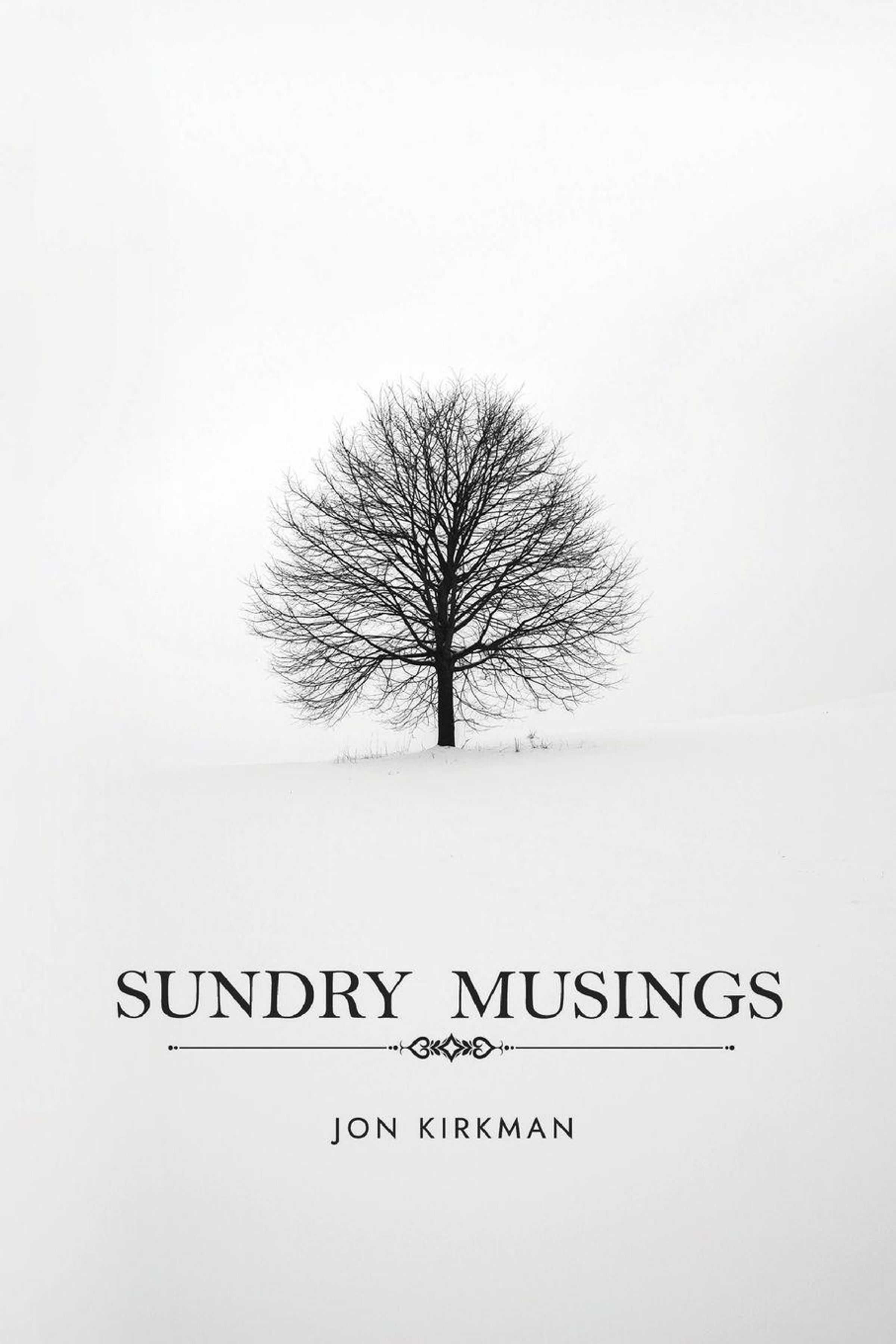 "Sundry Musings" und "Jon Kirkman" auf einem minimalistischen Cover mit einem kahlen Baum im Schnee., Buch