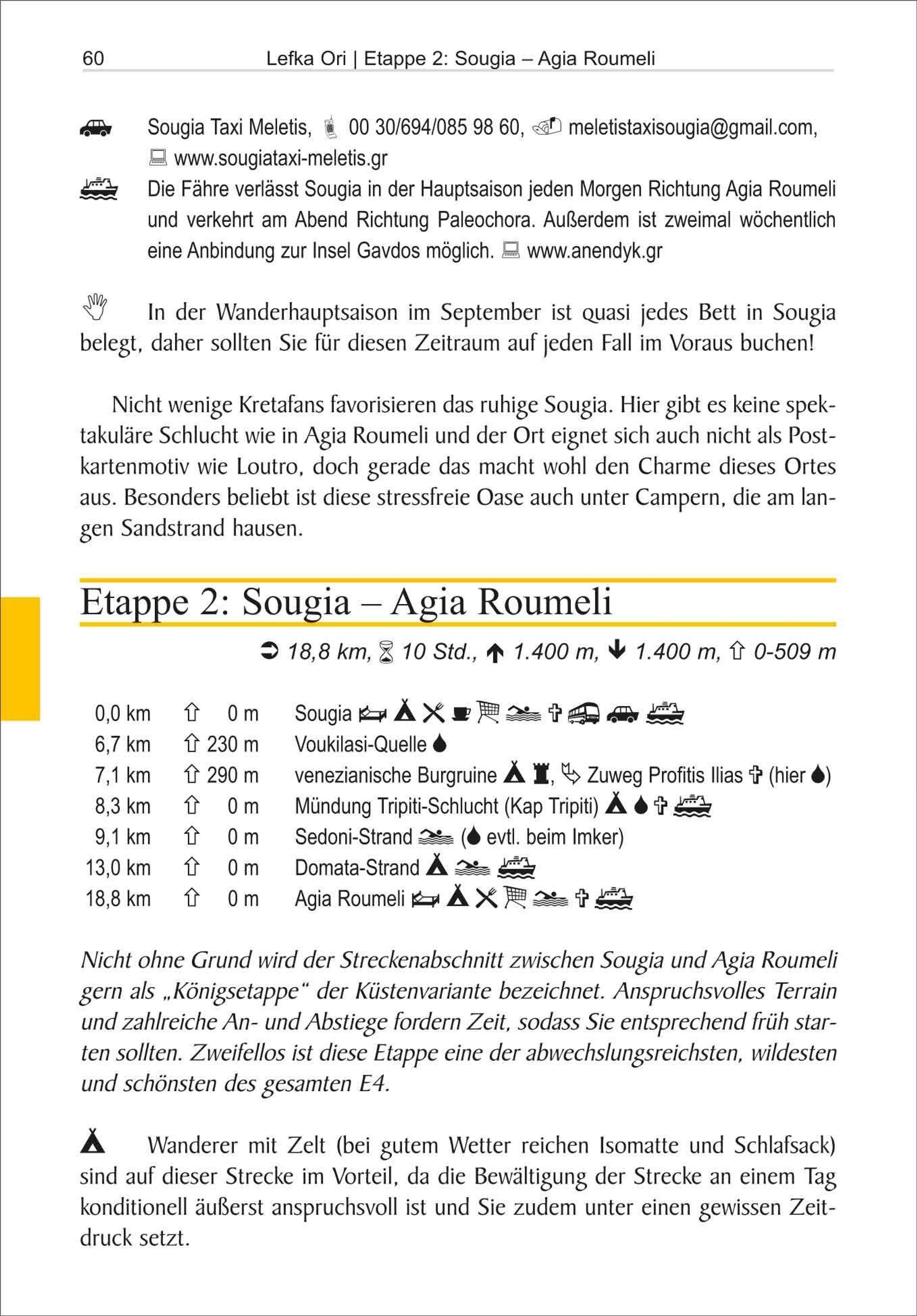 Hohe Berge, tiefe Schluchten, einsame Strände, dazu so viel Sonne wie kaum anderswo in Europa: Nicht ohne Grund ist Kreta ein beliebtes Ziel zum Wandern. Beschrieben werden 2 Teilstrecken des E4: entlang Kretas Südwestküste und durch die Lefka Ori (125 km) und durch die Präfektur Lasithi zum östlichen Ende der Insel nach Kato Zakros (145 km).