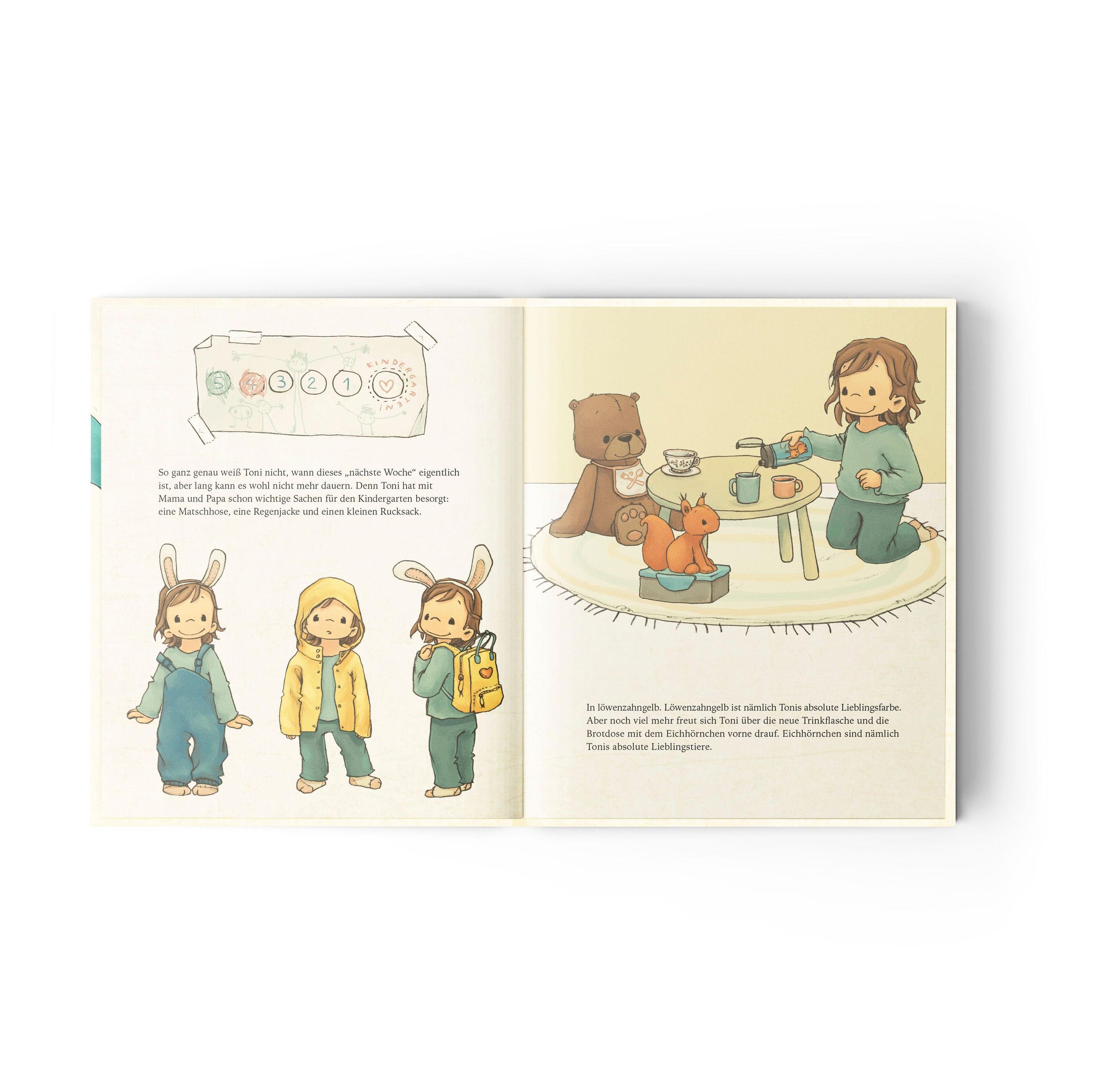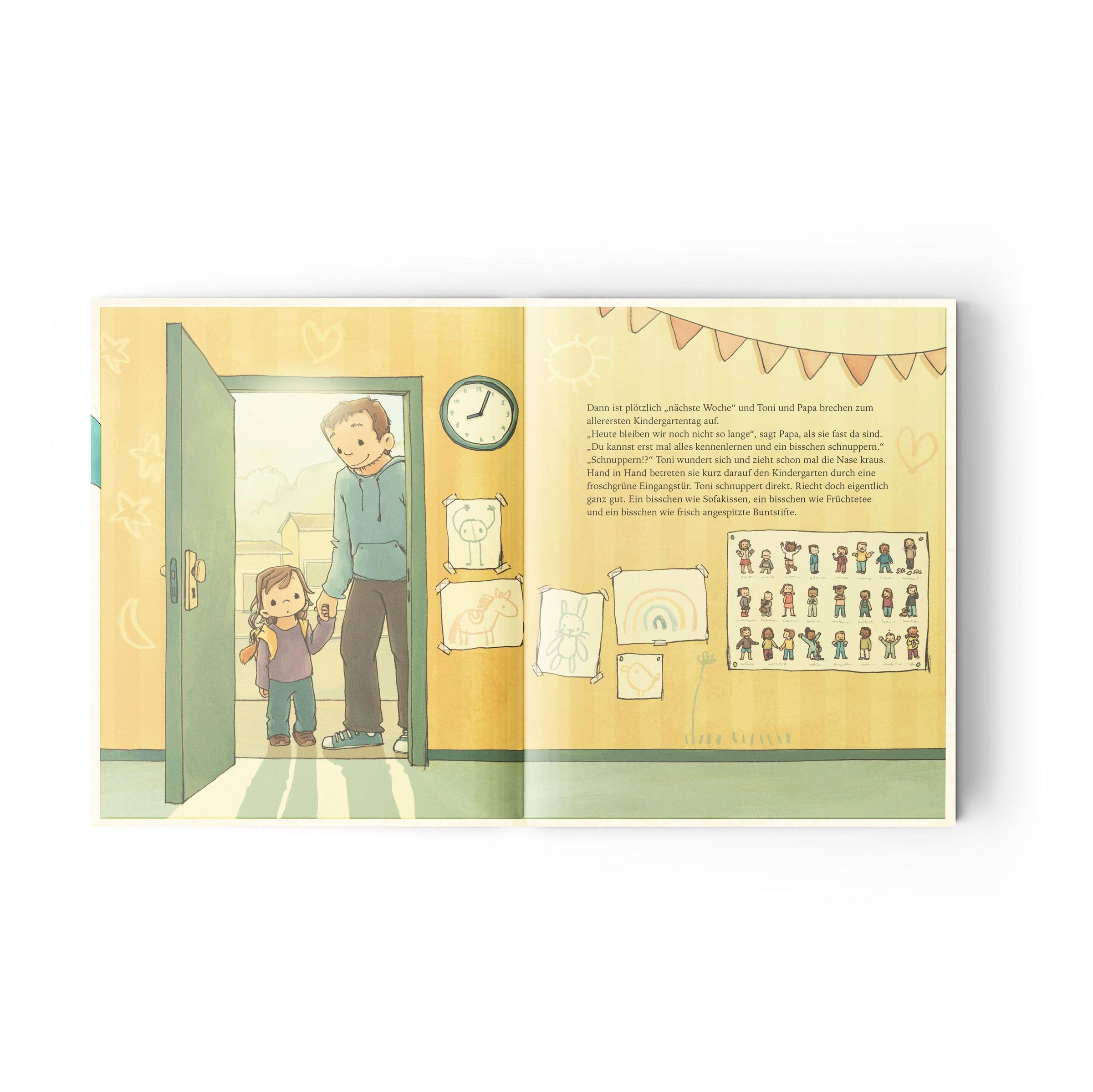 Mit Vorfreude und Bauchkribbeln lernt Toni am ersten KiTa-Tag neue Gesichter, neue Räume und neue Abenteuer kennen. Zum Glück gibt es Papa, der beim Ankommen hilft, und Cemre, die ganz viel Sicherheit schenkt. Ein liebevolles Bilderbuch über Abschied und Vertrauen, über Mut, Geborgenheit und über ein kleines Filzstift-Herz, das Kinder und Eltern verbindet ... Ein warmes, ehrliches Buch über Eingewöhnung, Vertrauen und die kleinen Rituale, die Kinder stark machen. Geschrieben mit viel Herz und großer Expertise von dem zweifach-Papa, Blogger und ehemaligen KiTa-Leiter Jonas Kozi.