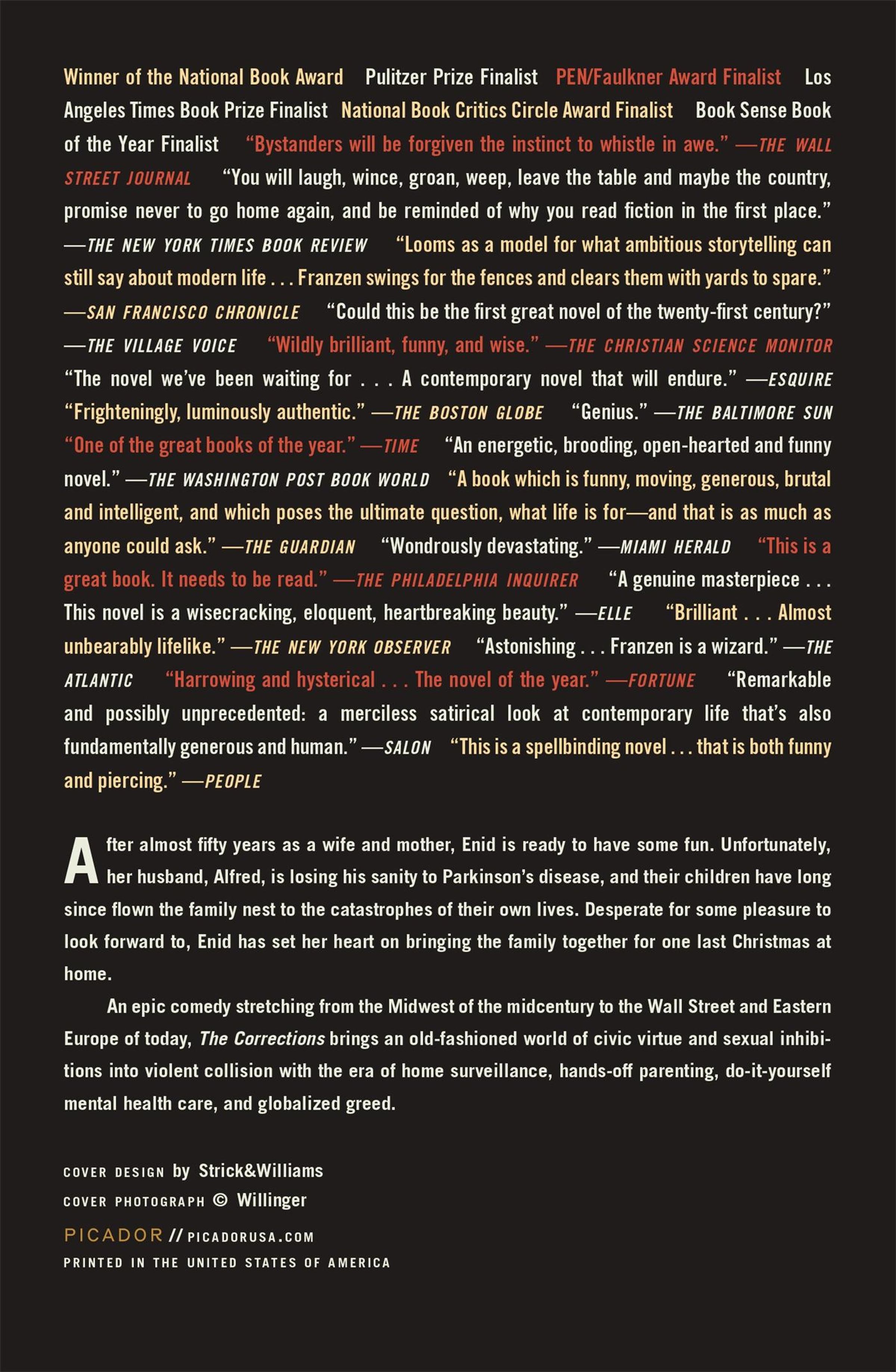 After almost fifty years as a wife and mother, Enid Lambert is ready to have some fun. Unfortunately, her husband, Alfred, is losing his sanity to Parkinson's disease, and their children have long since flown the family nest to the catastrophes of their own lives.