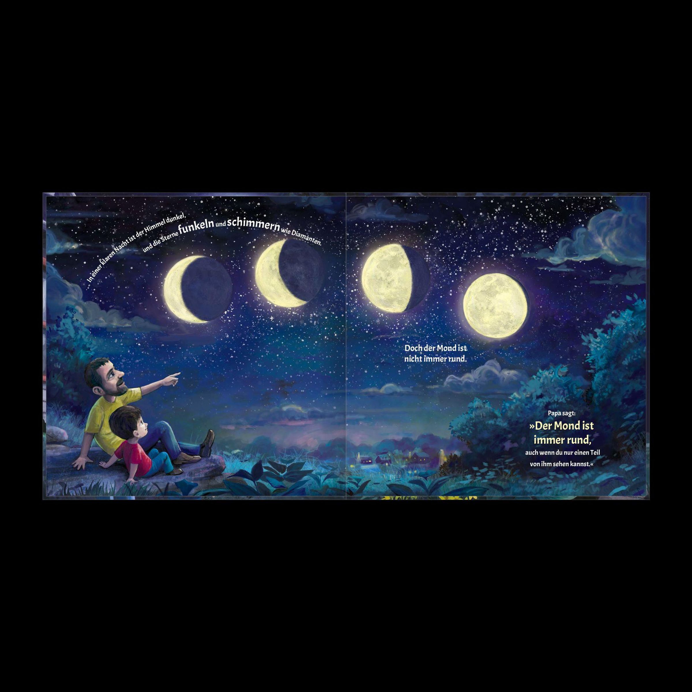 In Der Mond ist immer rund lässt Jonathan Gibson den Leser an einfühlsamen Gesprächen mit seinem kleinen Sohn teilhaben, nachdem dessen Schwester tot geboren wurde. Mit dem anschaulichen Bild des Mondes und seinen wechselnden Phasen erklärt er kindgerecht: So wie der Mond immer rund ist - auch wenn wir ihn nicht ganz sehen -, ist auch Gottes Güte immer da, auch wenn sie im Moment verborgen scheint.