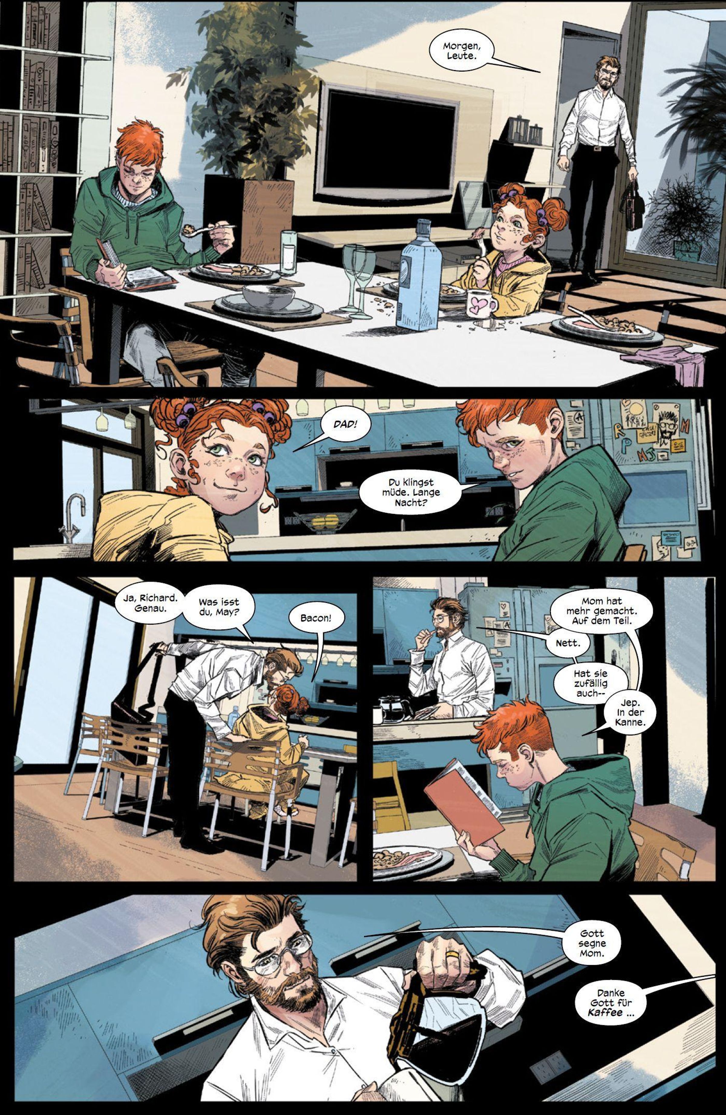 PLÖTZLICH SUPERHELD Im neuen Ultimativen Universum ist der erwachsene Peter Parker mit Mary Jane verheiratet und Vater zweier Kinder - und er hat keine Superkräfte. Dann wird er plötzlich zu Spider-Man und muss Familie sowie Heldentum unter einen Hut bringen. Zudem liefern sich Wilson Fisk und Green Goblin eine Fehde, und nicht nur J. Jonah Jameson kämpft für die Wahrheit. Die wichtigste Spidey-Neudefinition seit dem Debüt von Miles Morales! Eine grandiose Parallelwelt-Variante der Netzschwinger-Mythologie, inszeniert von Jonathan Hickman (X-Men, Avengers), Marco Checchetto (Punisher) und David Messina (Ultimate Comics Wolverine).
