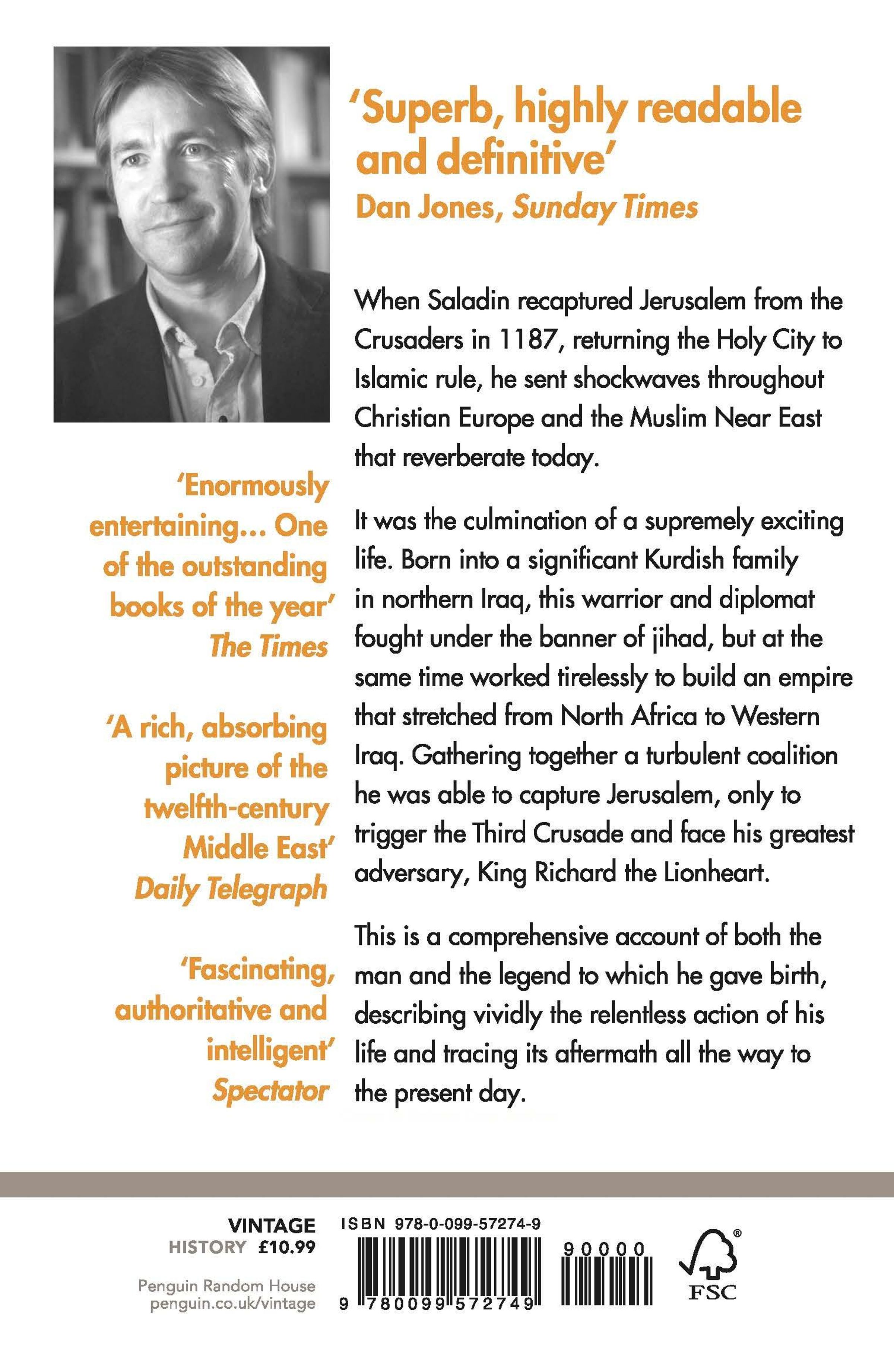 'Superbly researched and enormously entertaining... One of the outstanding books of the year' The TimesAn epic story of empire-building and bloody conflict, this ground-breaking biography of one of history's most venerated military and religious heroes opens a window on the Islamic and Christian worlds' complex relationship. WINNER OF THE SLIGHTLY FOXED BEST FIRST BIOGRAPHY PRIZEWhen Saladin recaptured Jerusalem from the Crusaders in 1187, returning the Holy City to Islamic rule, he sent shockwaves throughout Christian Europe and the Muslim Near East that reverberate today. It was the culmination of a supremely exciting life. Born into a significant Kurdish family in northern Iraq, this warrior and diplomat fought under the banner of jihad, but at the same time worked tirelessly to build an empire that stretched from North Africa to Western Iraq. Gathering together a turbulent coalition, he was able to capture Jerusalem, only to trigger the Third Crusade and face his greatest adversary, King Richard the Lionheart. Drawing on a rich blend of Arabic and European sources, this is a comprehensive account of both the man and the legend to which he gave birth, describing vividly the relentless action of his life and tracing its aftermath through culture and politics all the way to the present day. 'An authoritative and brilliantly told account of the life of one of the world's greatest - and most famous - military leaders' Peter Frankopan