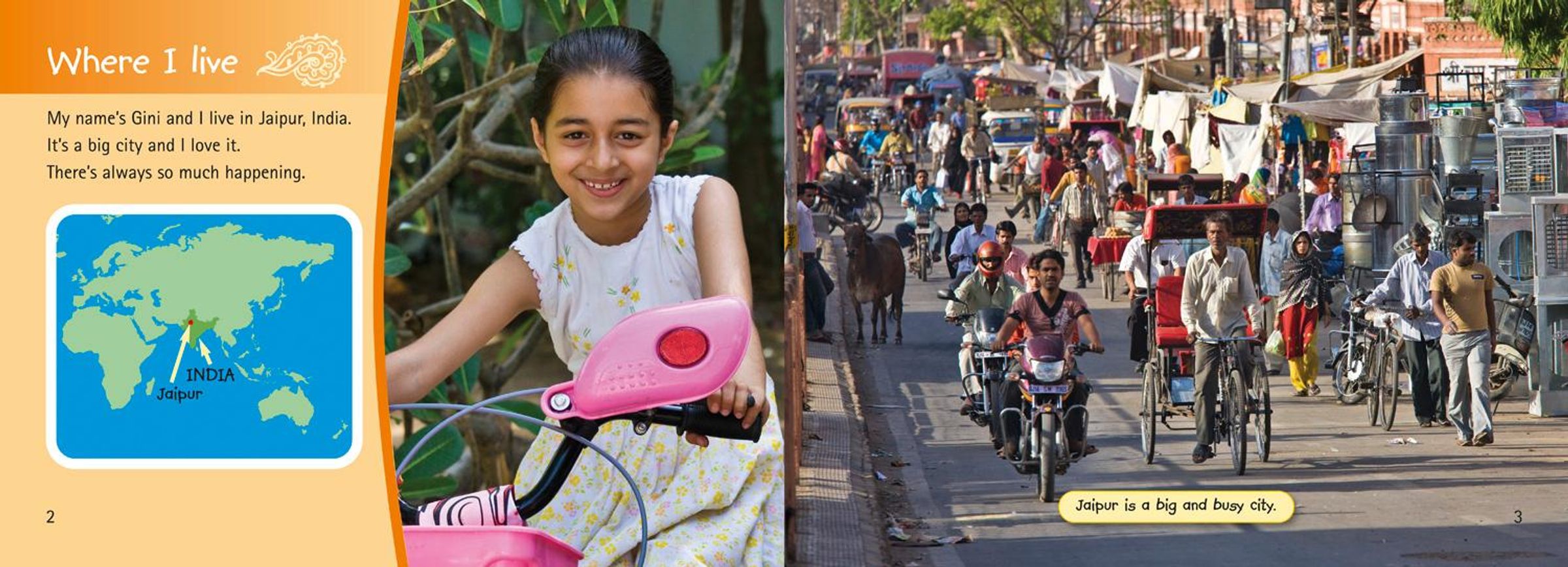 - A spider diagram on pages 22 and 23 shows all the main aspects of Gini's day, and helps children recap the main features of life in India.
