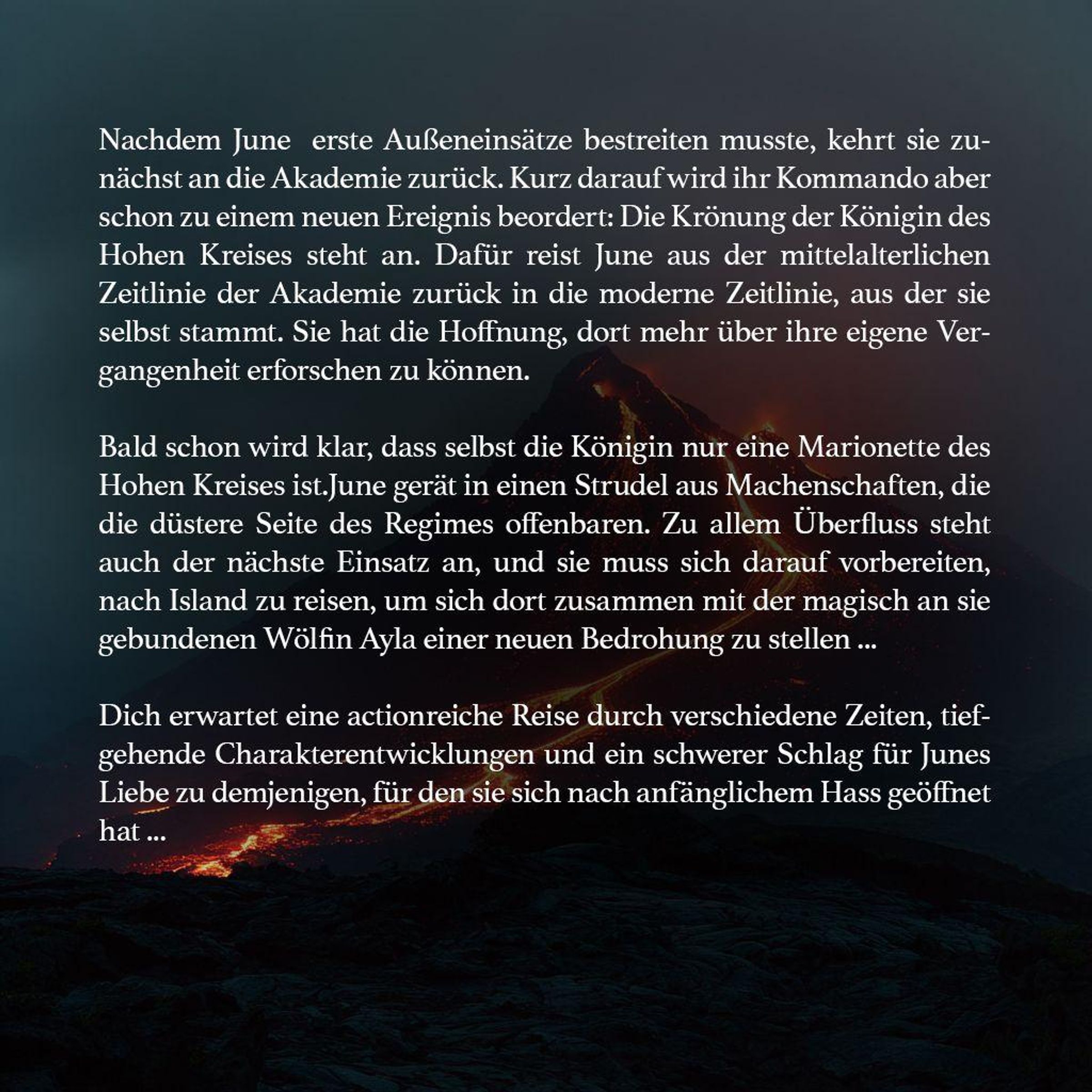 Bald schon wird klar, dass selbst die Königin nur eine Marionette des Hohen Kreises ist. June gerät in einen Strudel aus Machenschaften, die die düstere Seite des Regimes offenbaren. Zu allem Überfluss steht auch der nächste Einsatz an, und sie muss sich darauf vorbereiten, nach Island zu reisen, um sich dort zusammen mit der magisch an sie gebundenen Wölfin Ayla einer neuen Bedrohung zu stellen ...