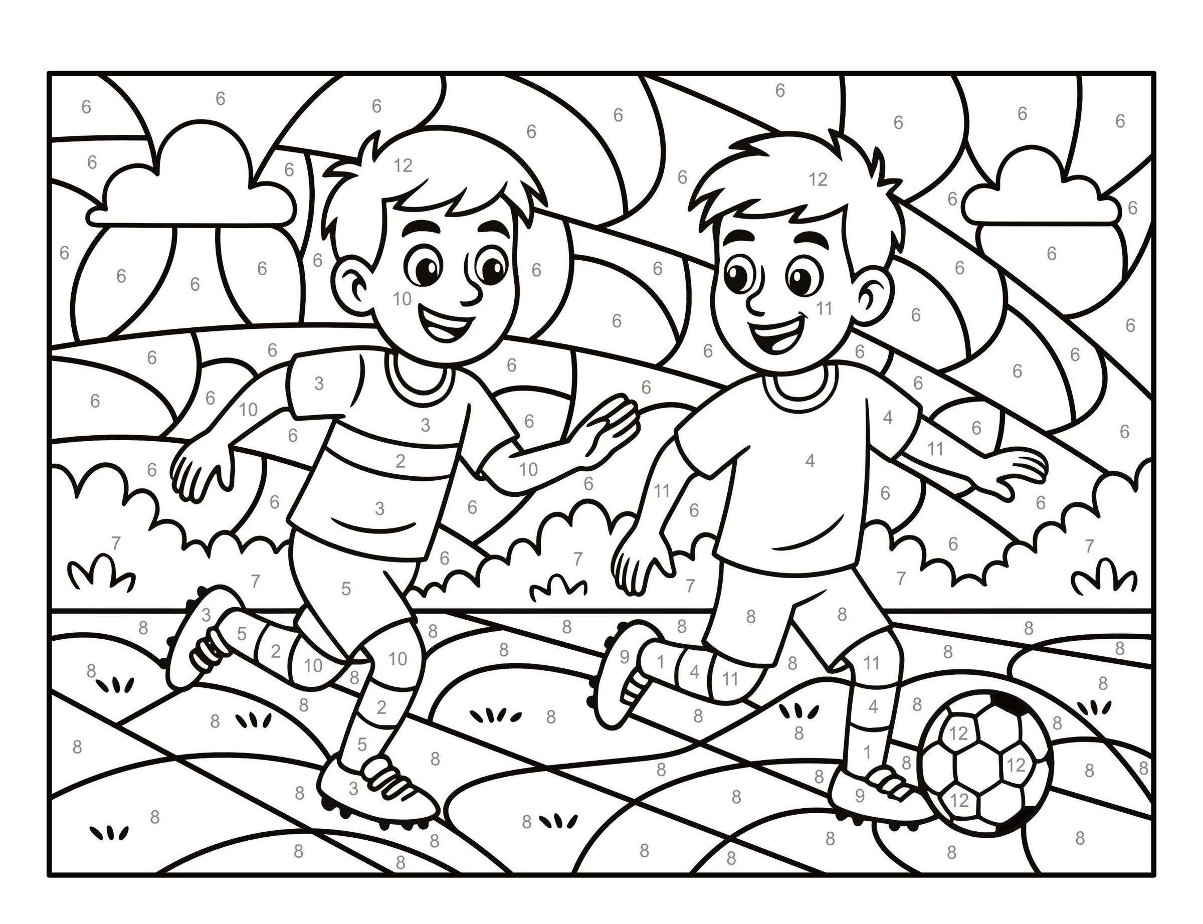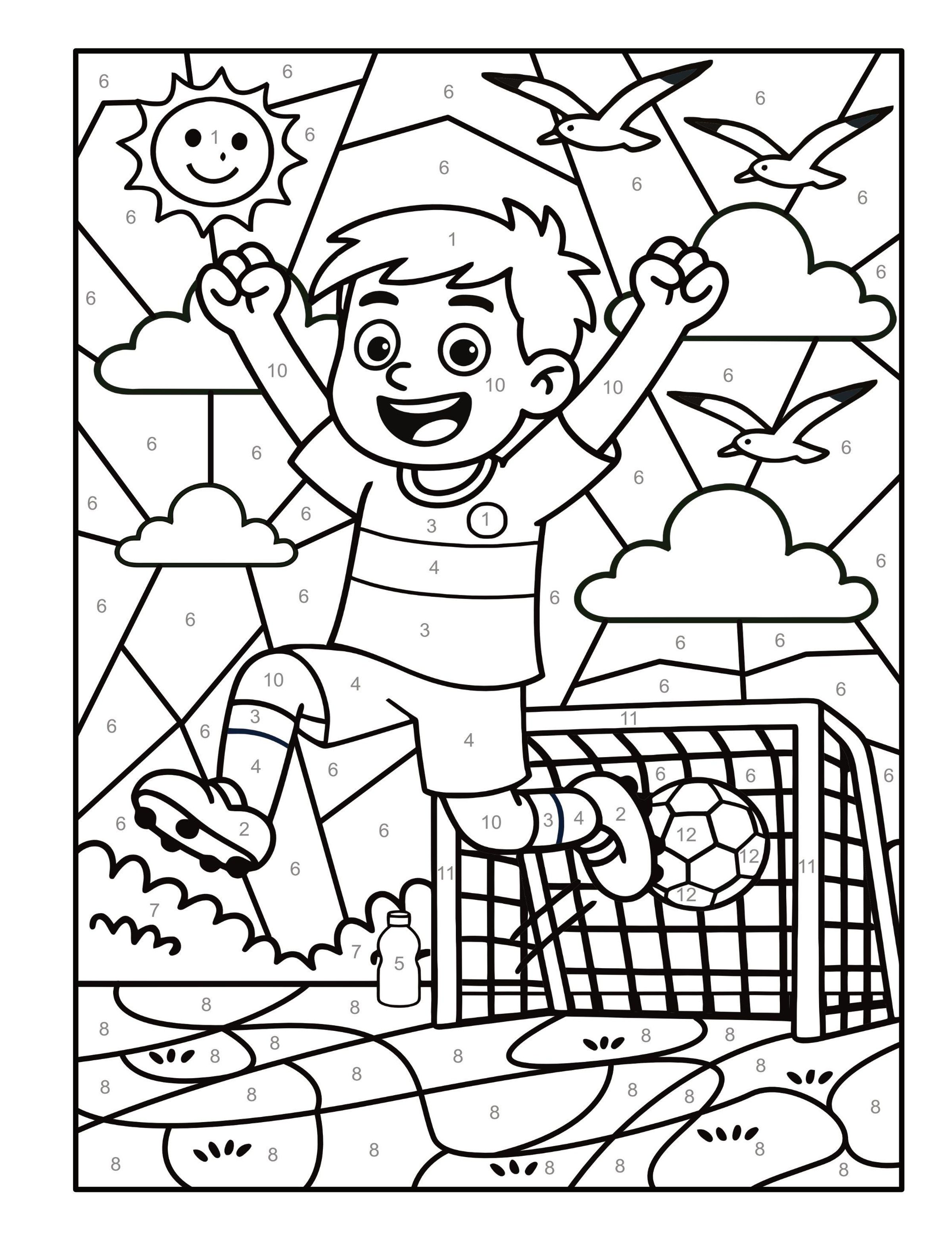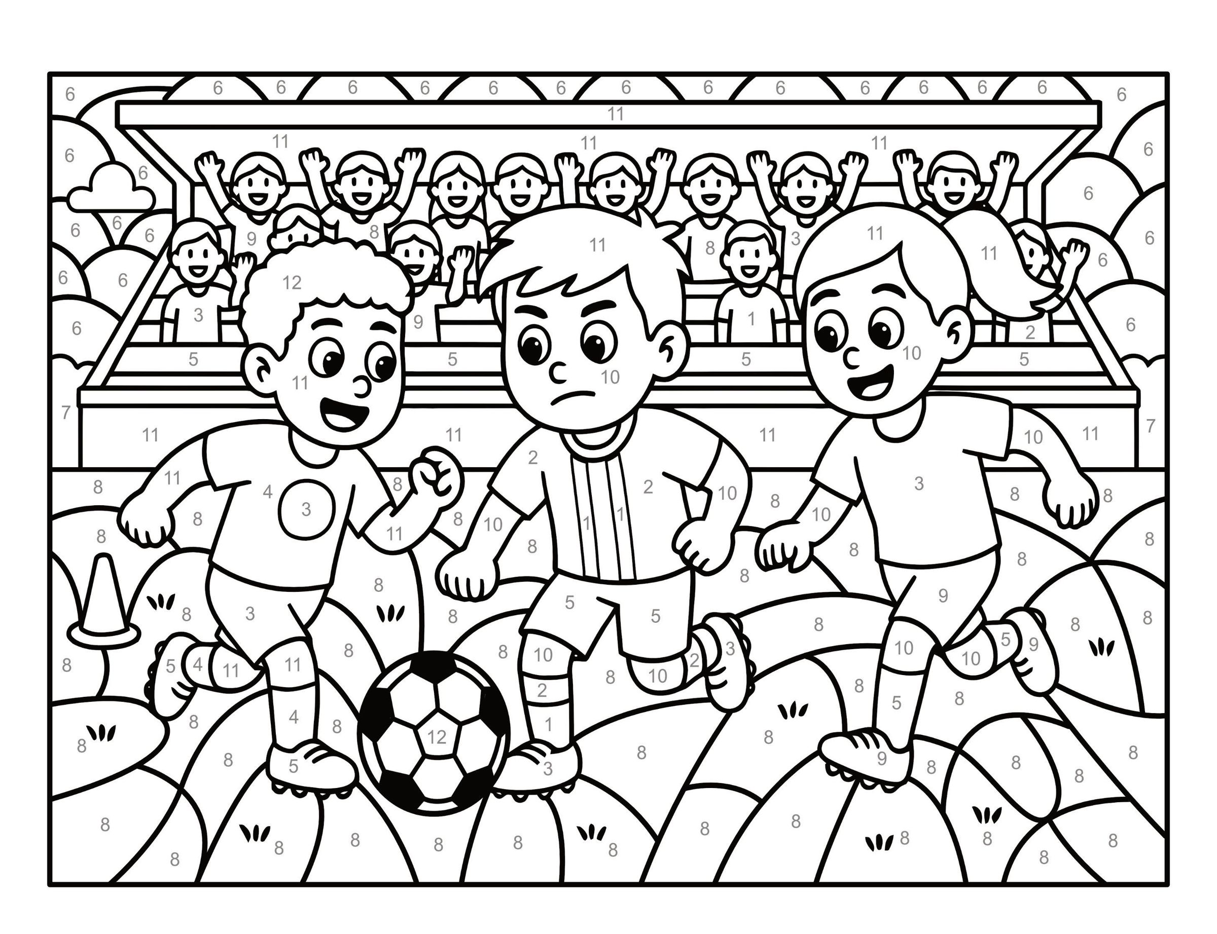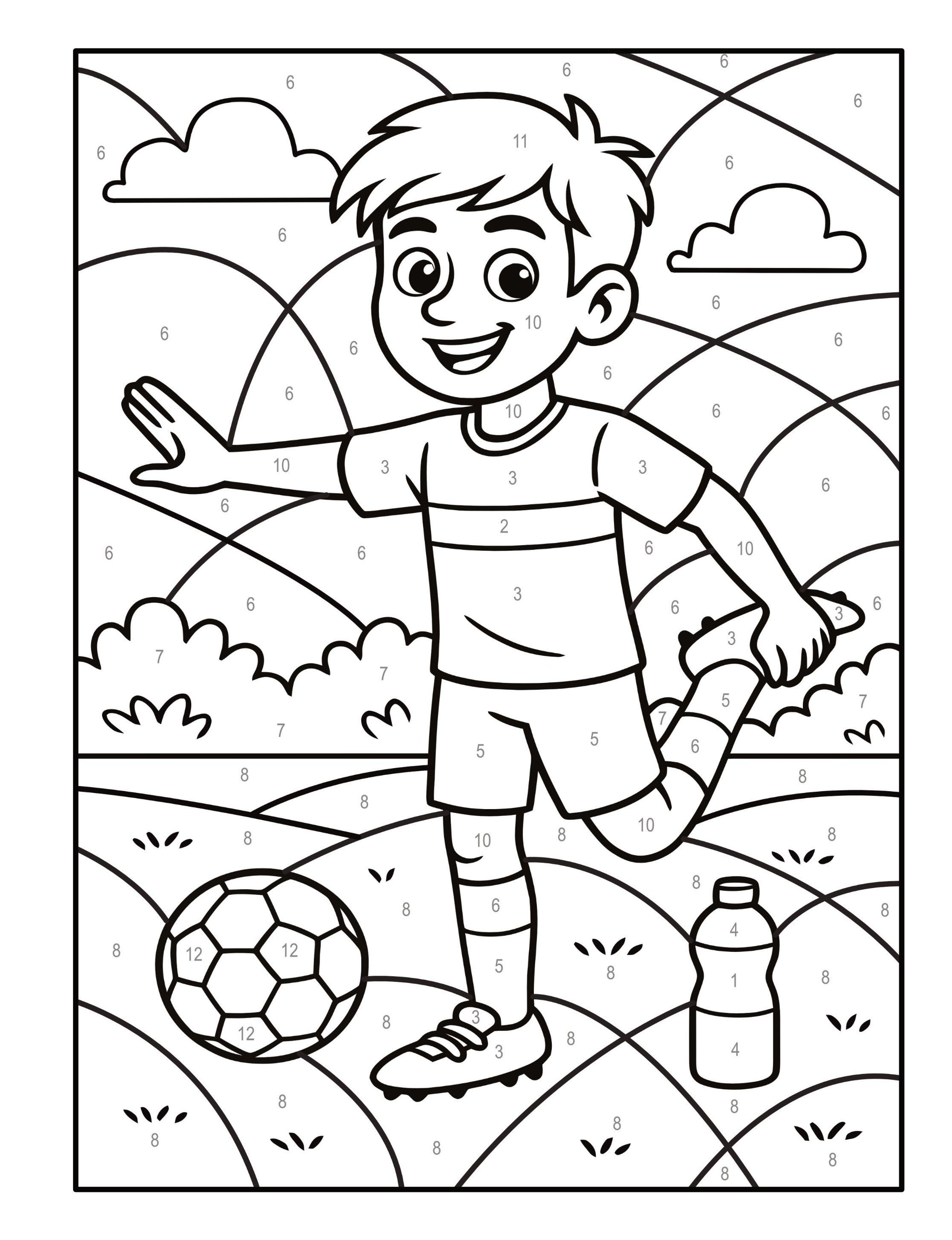 Malen nach Zahlen Fußball Malbuch für Kinder ab 5-7 Jahren