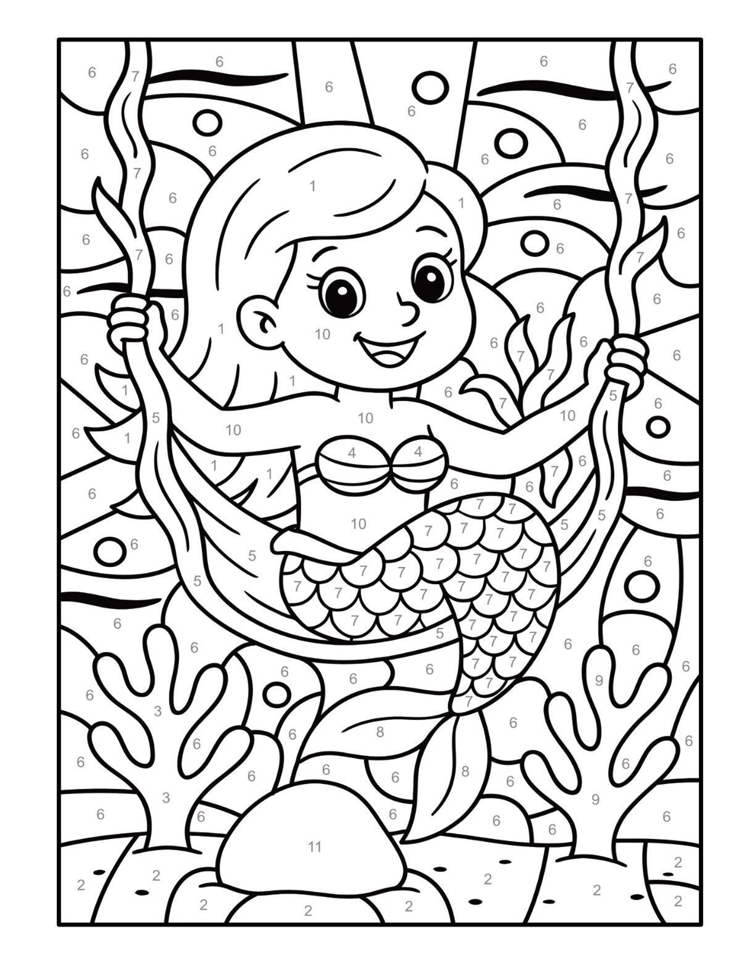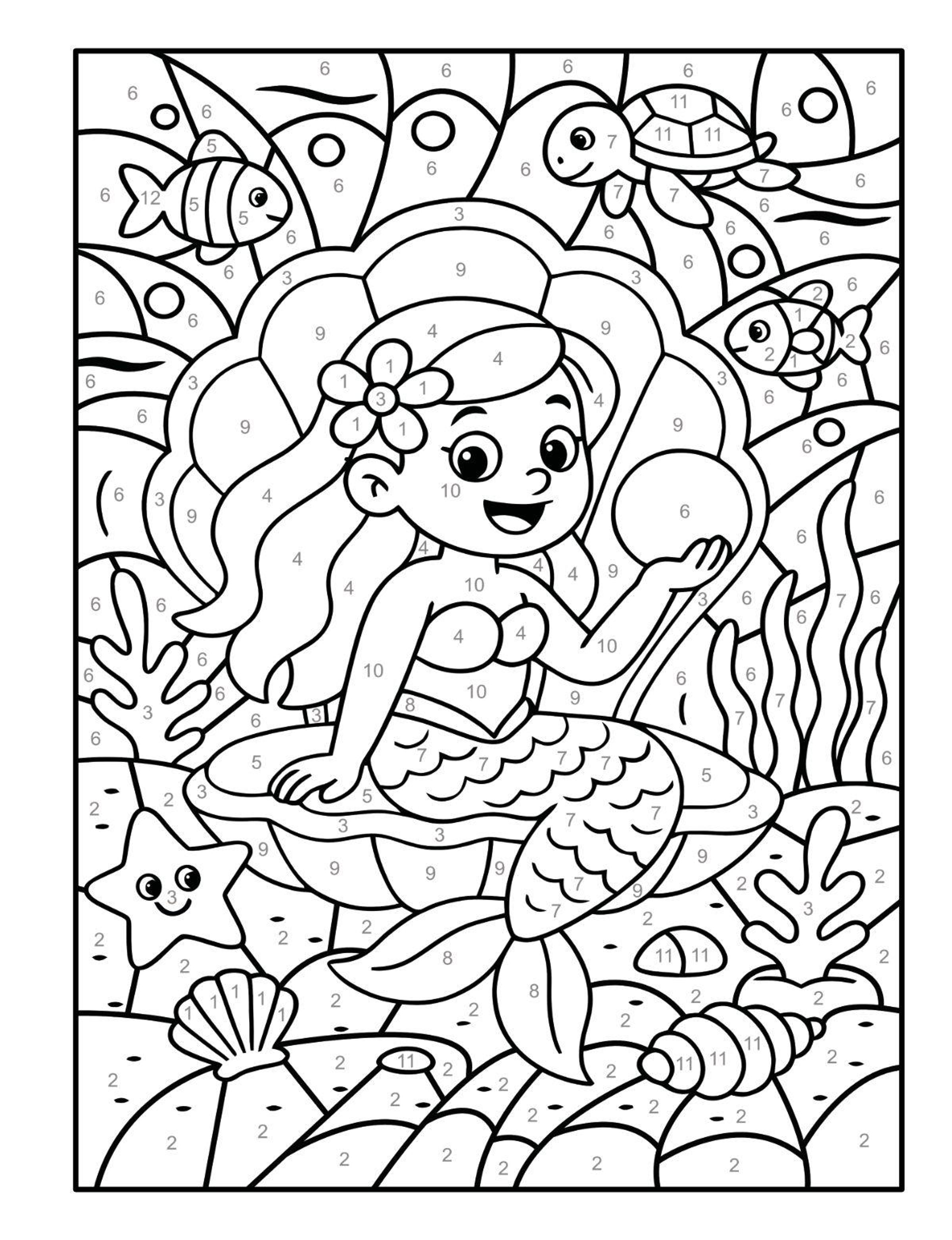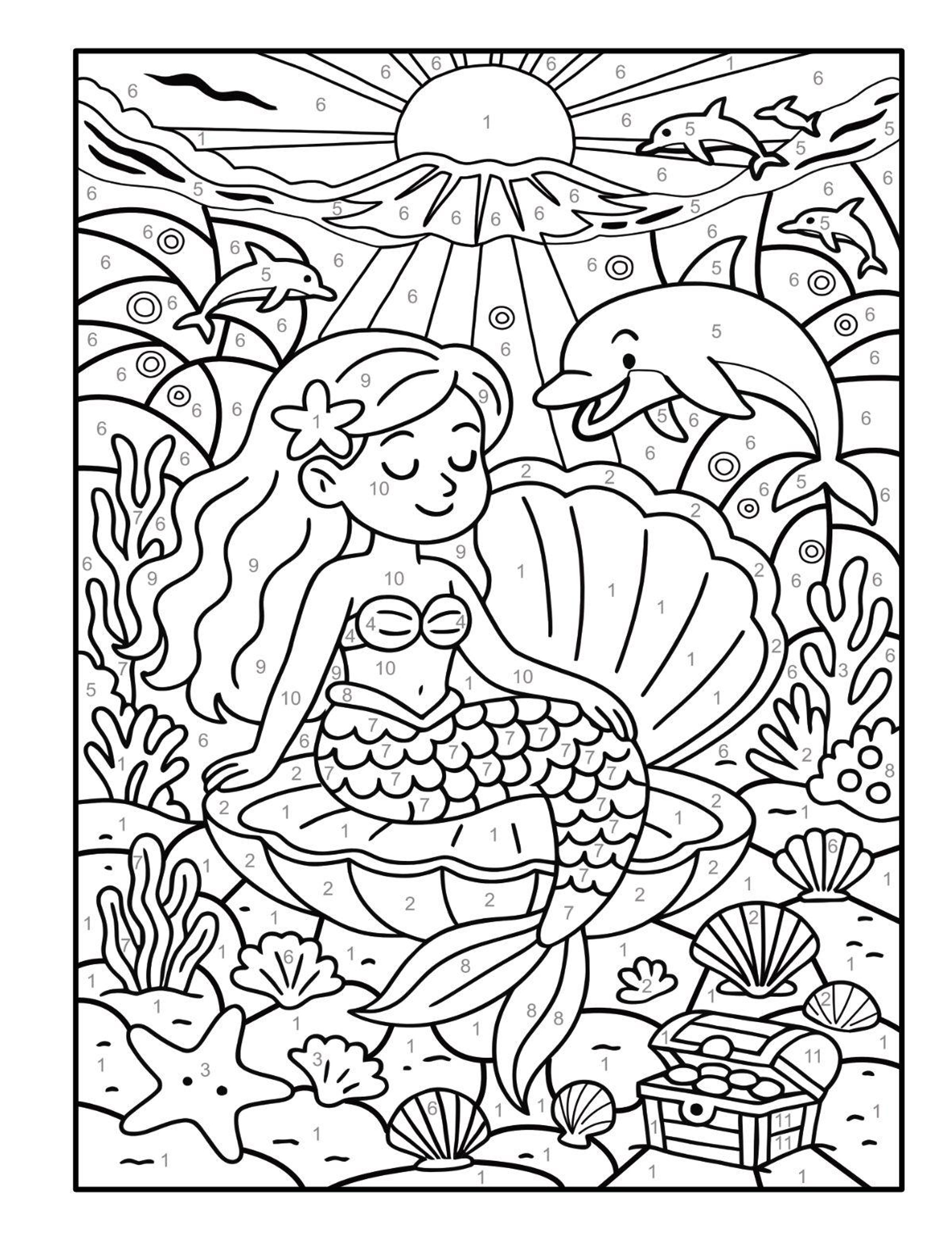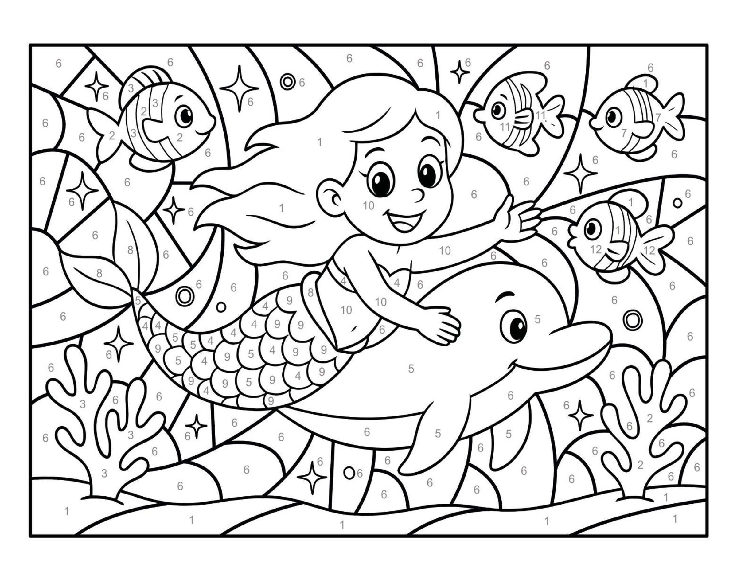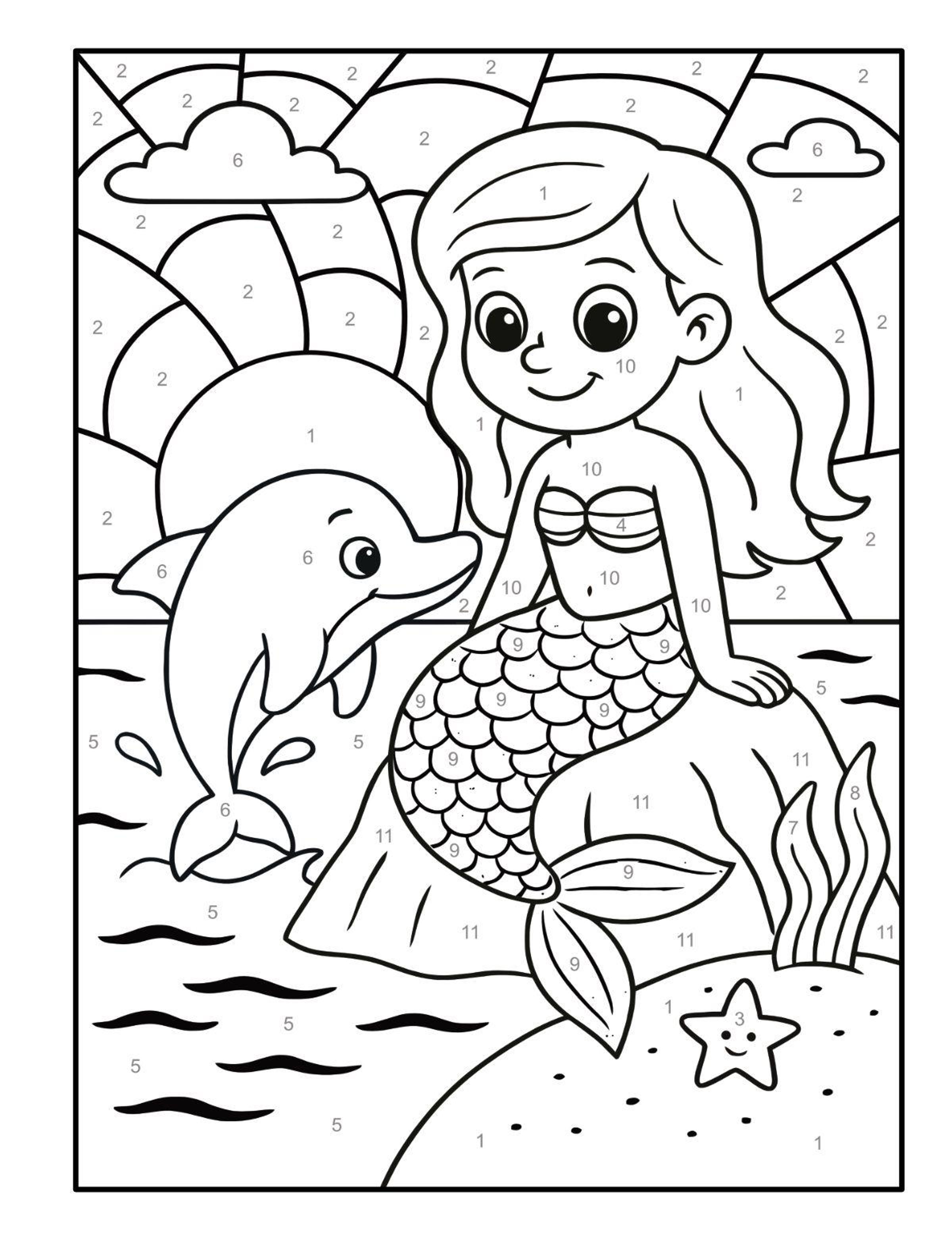 Malen nach Zahlen Meerjungfrau Malbuch für Kinder ab 5-7 Jahren