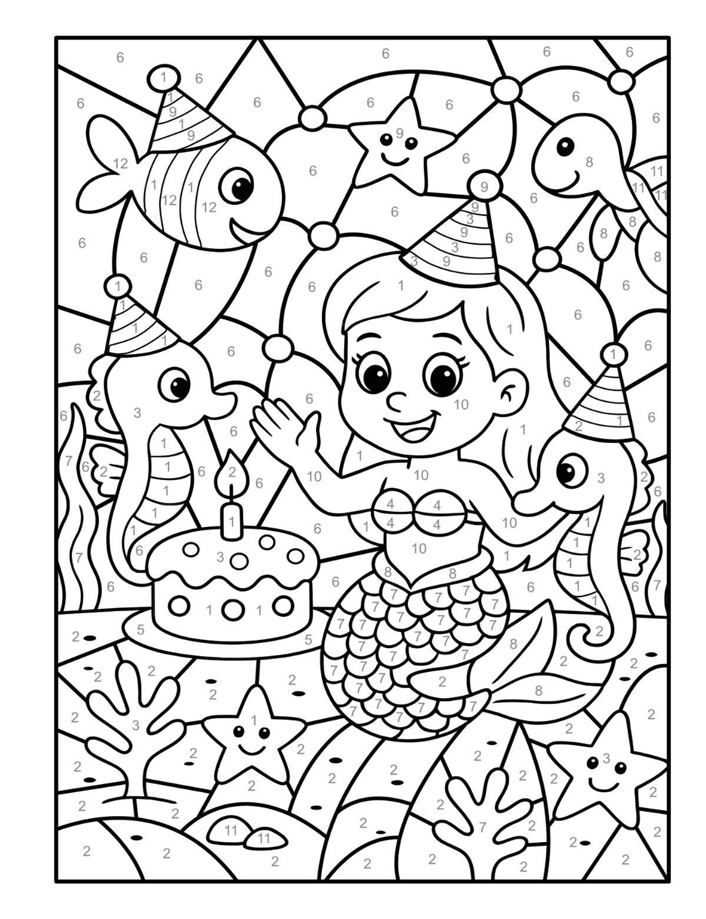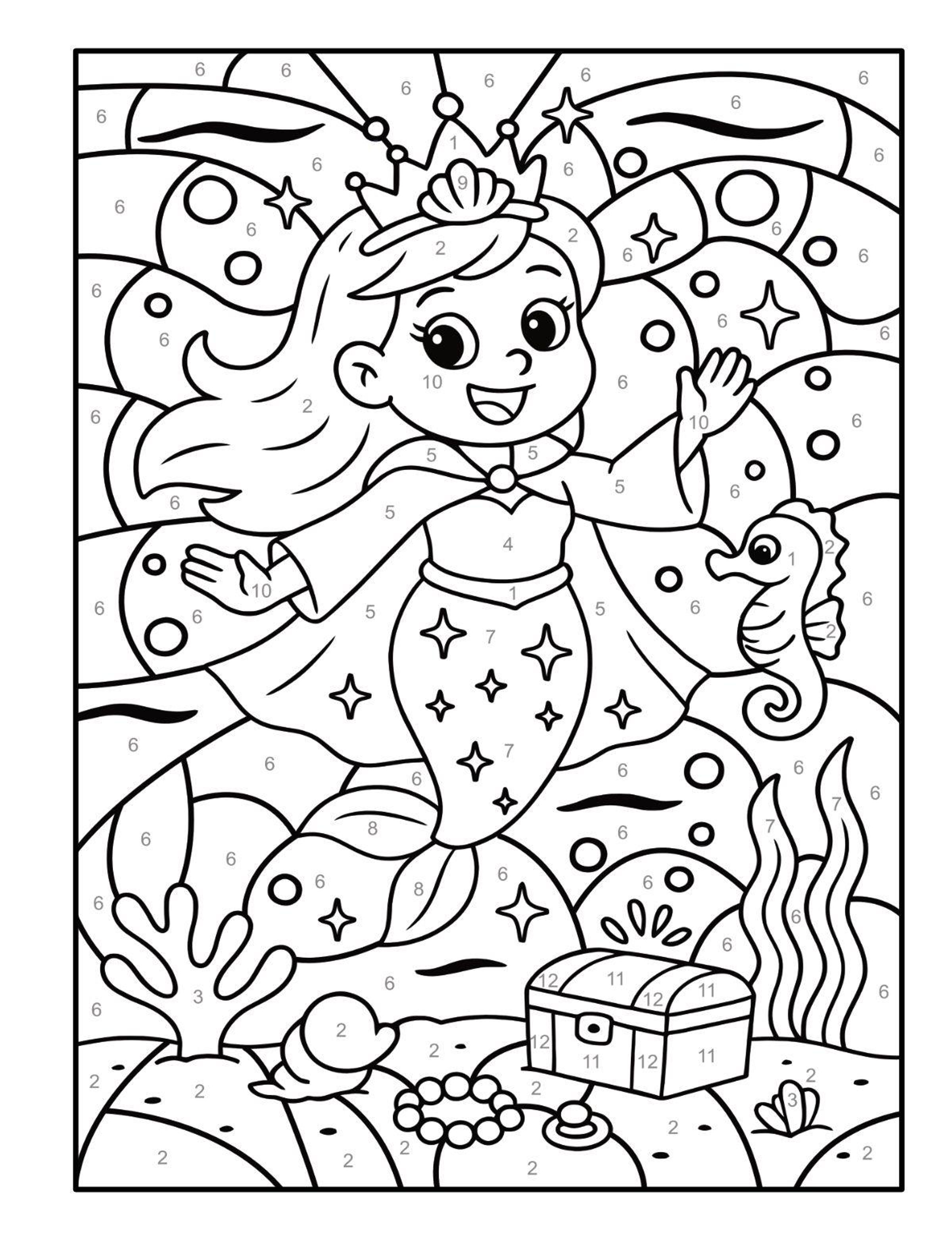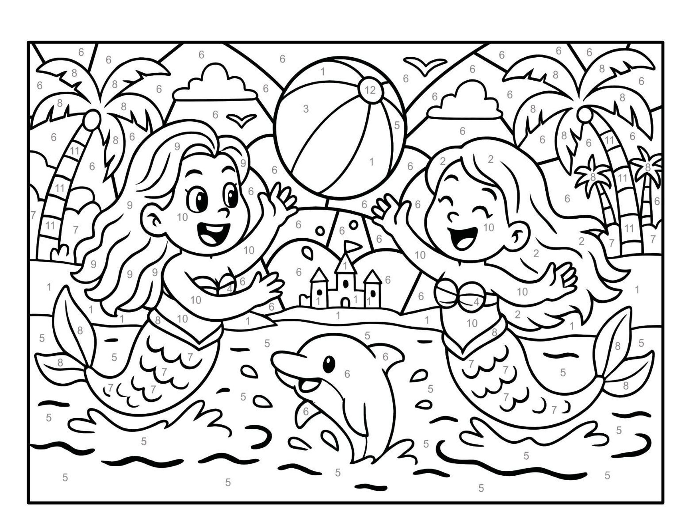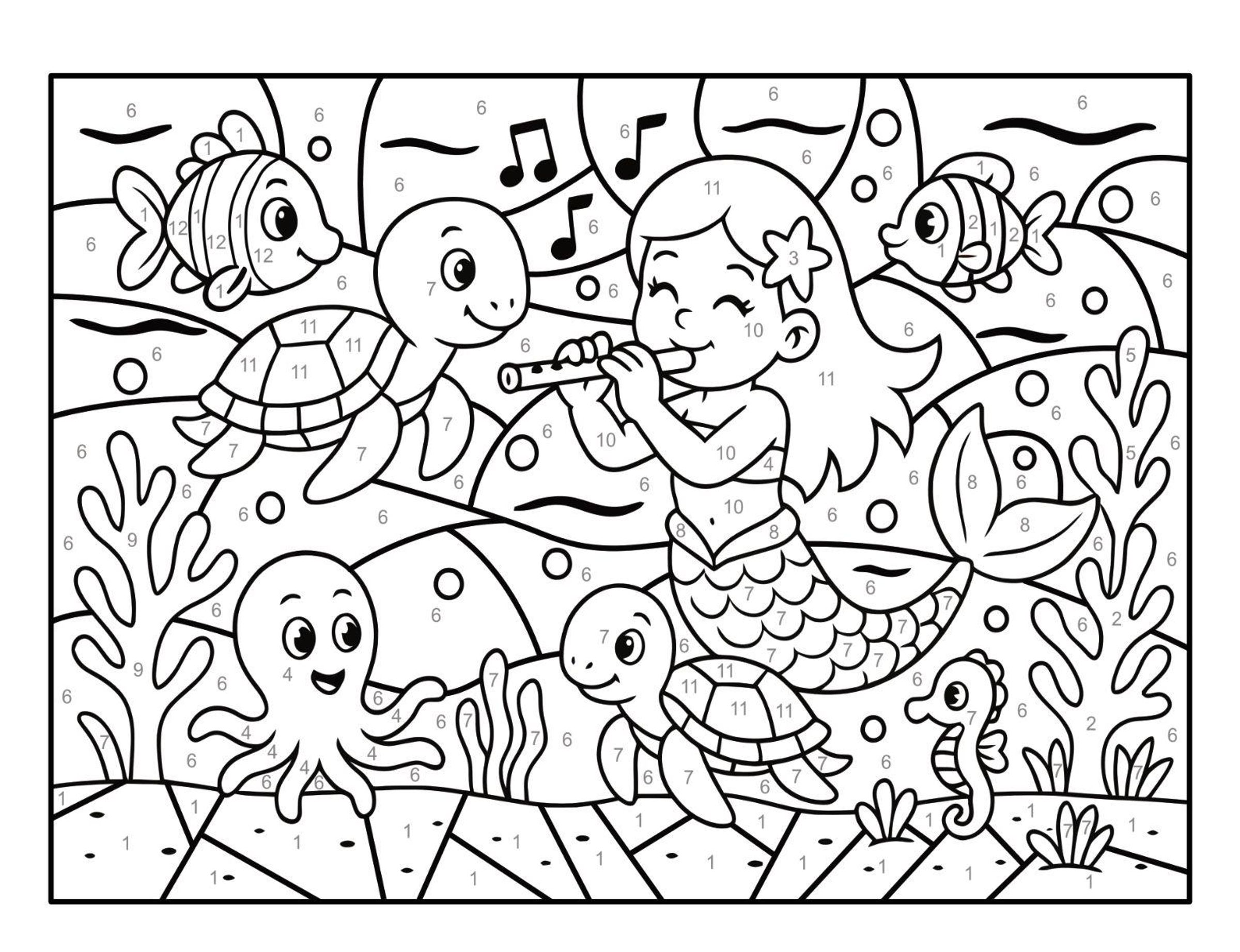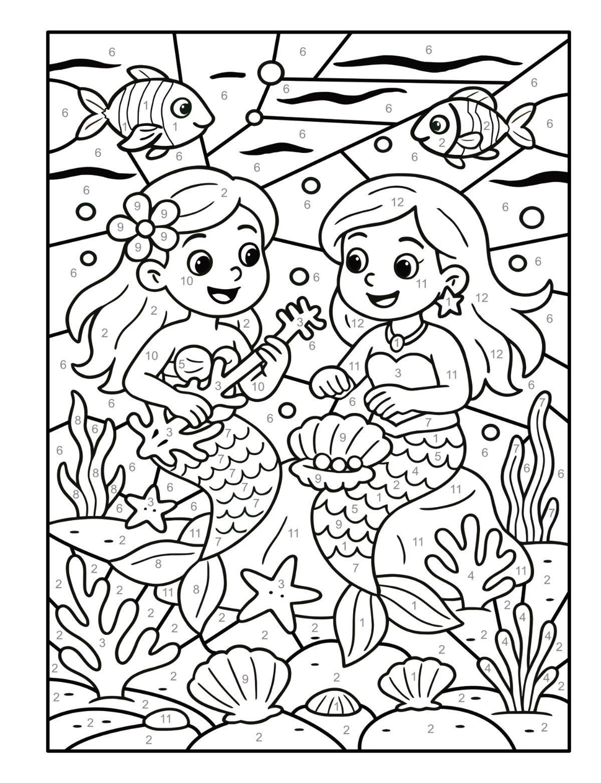 Malen nach Zahlen Meerjungfrau Malbuch für Kinder ab 5-7 Jahren