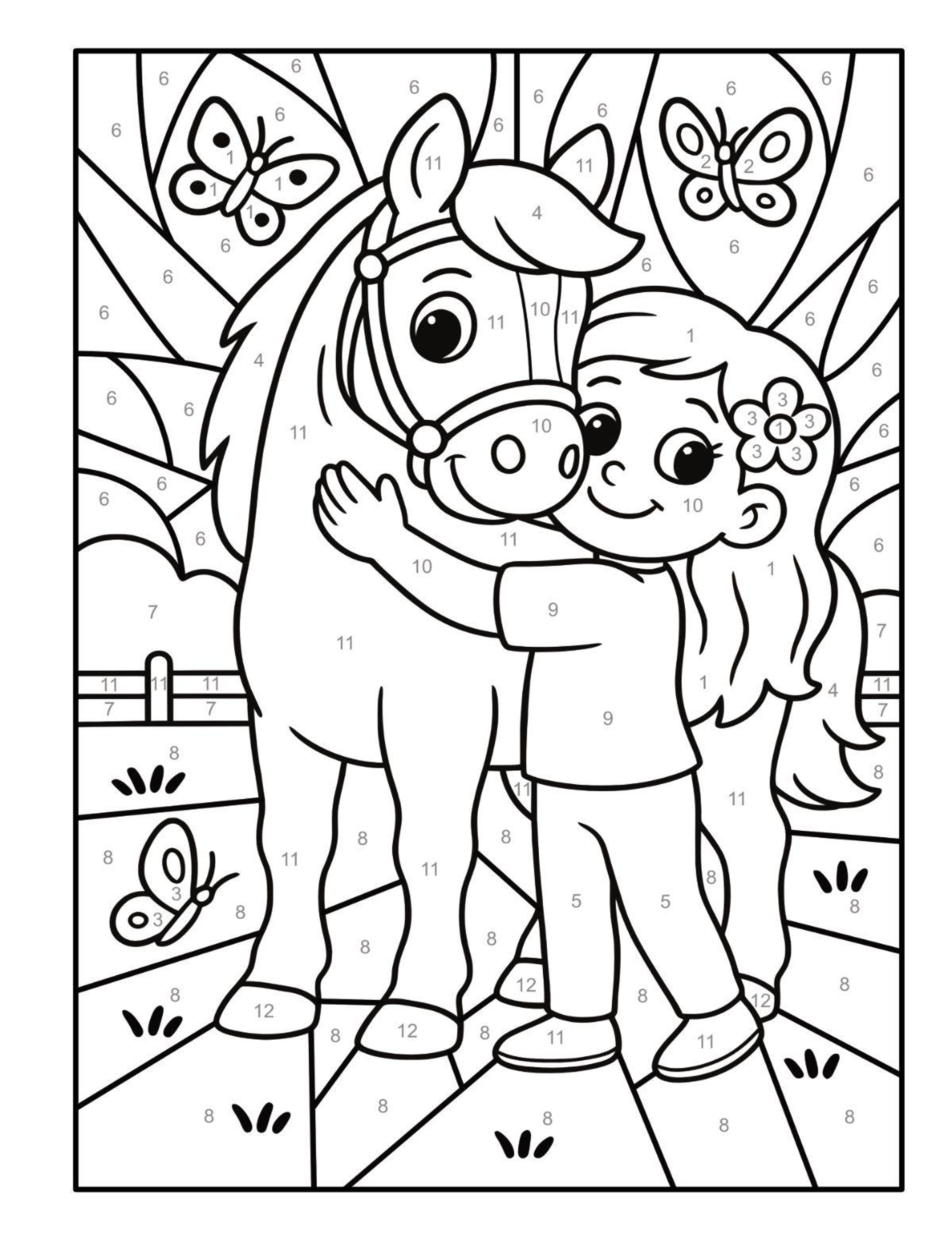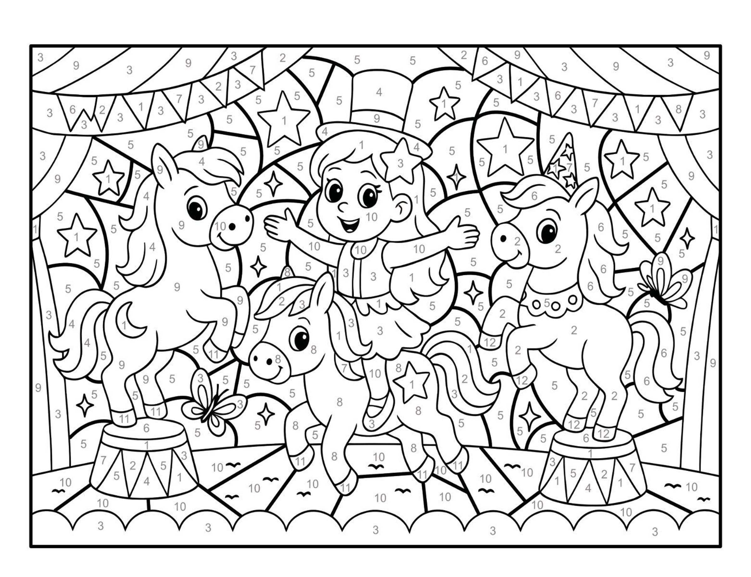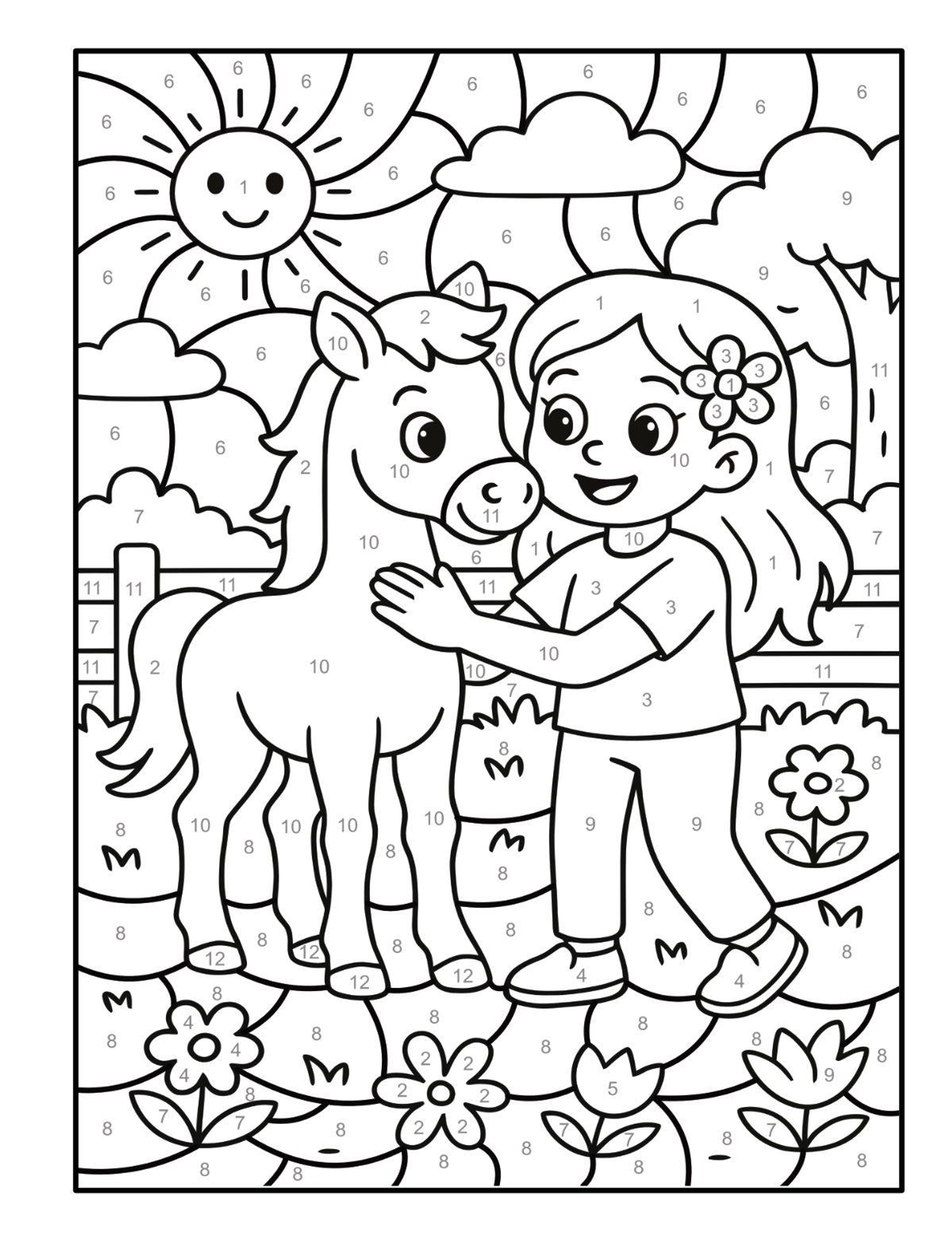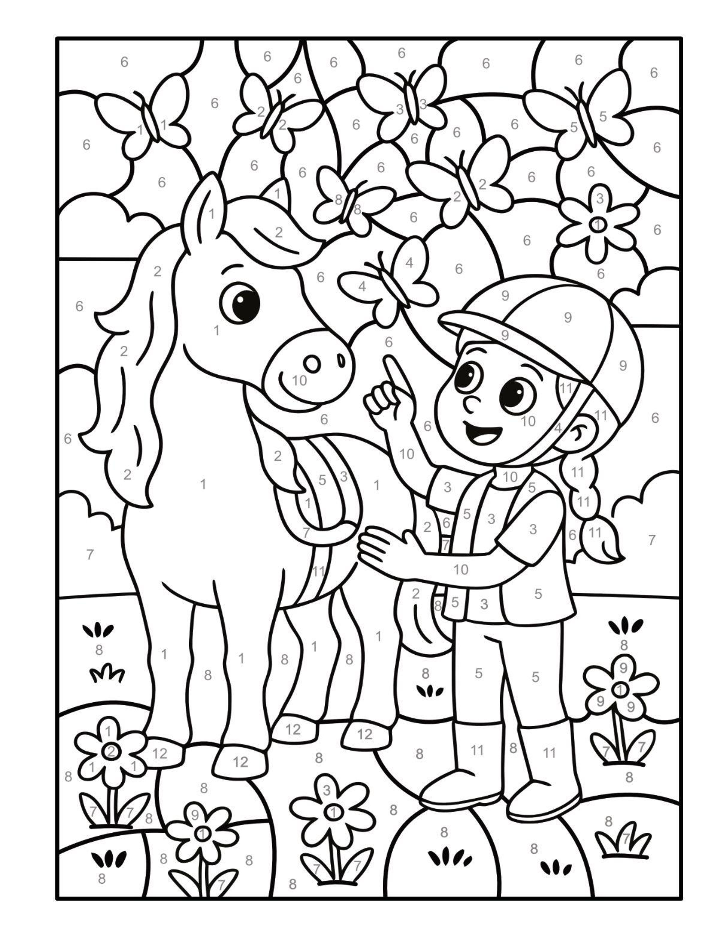 Malen nach Zahlen Pferde Malbuch für Kinder ab 5-7 Jahren