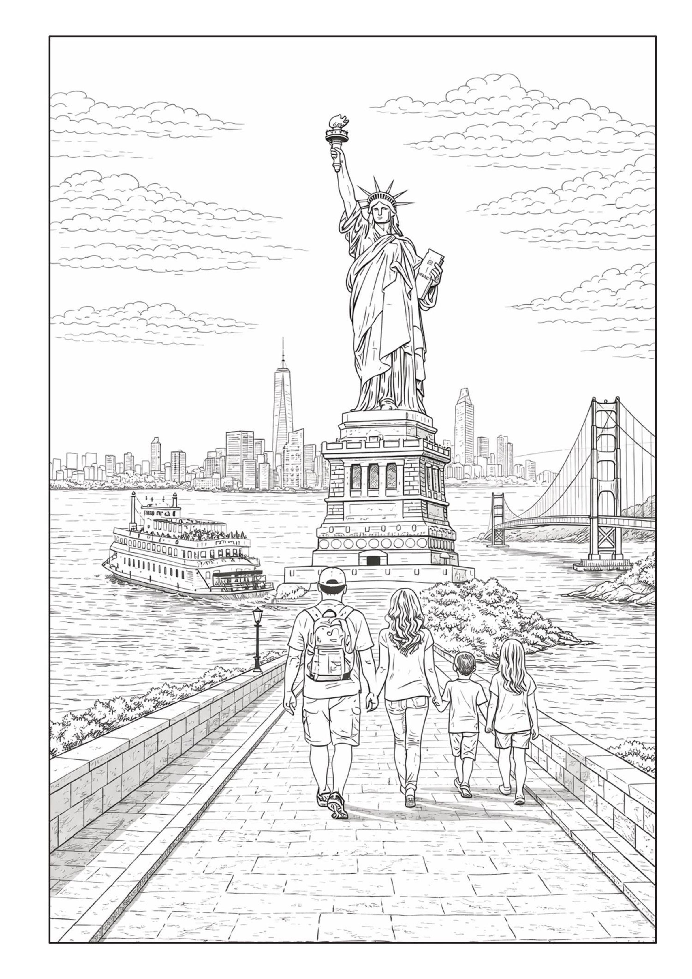 • Ein Ausmalbuch mit Amerikas schönsten Städten, ikonischen Sehenswürdigkeiten und legendären Traumorten