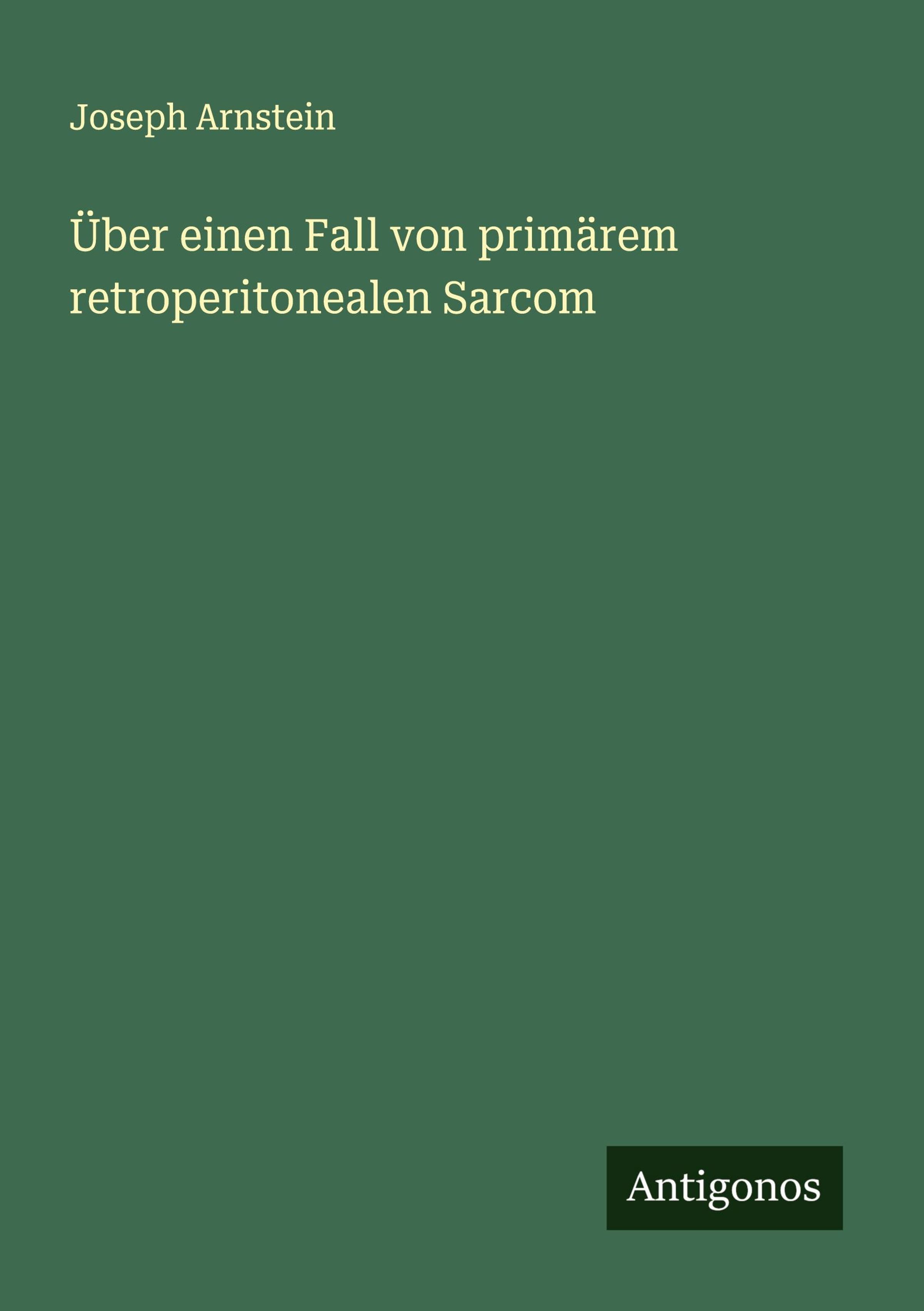 Joseph Arnstein: Über einen Fall von primärem retroperitonealen Sarcom, Kartoniert / Broschiert