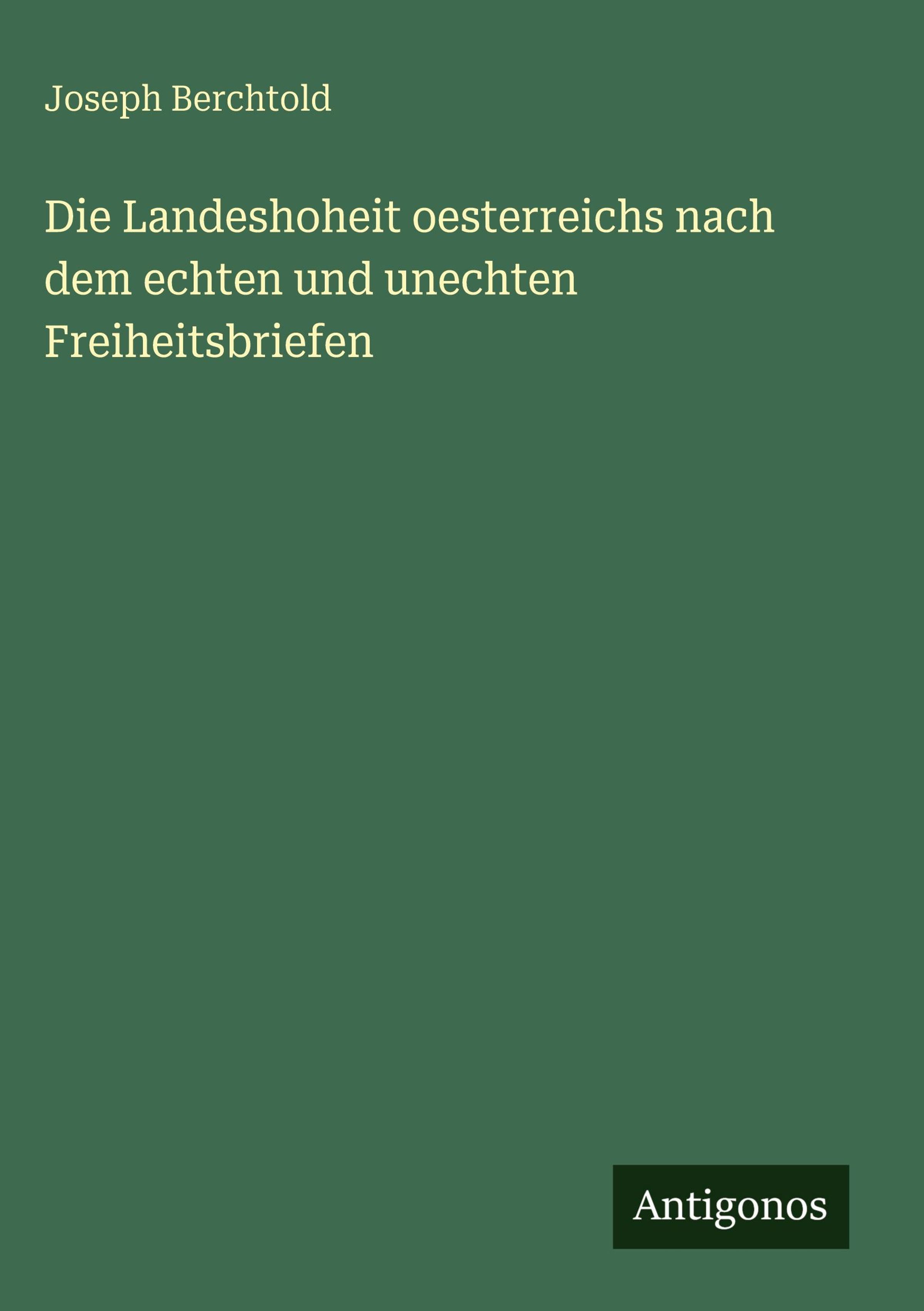 Joseph Berchtold: Die Landeshoheit oesterreichs nach dem echten und unechten Freiheitsbriefen, Gebunden