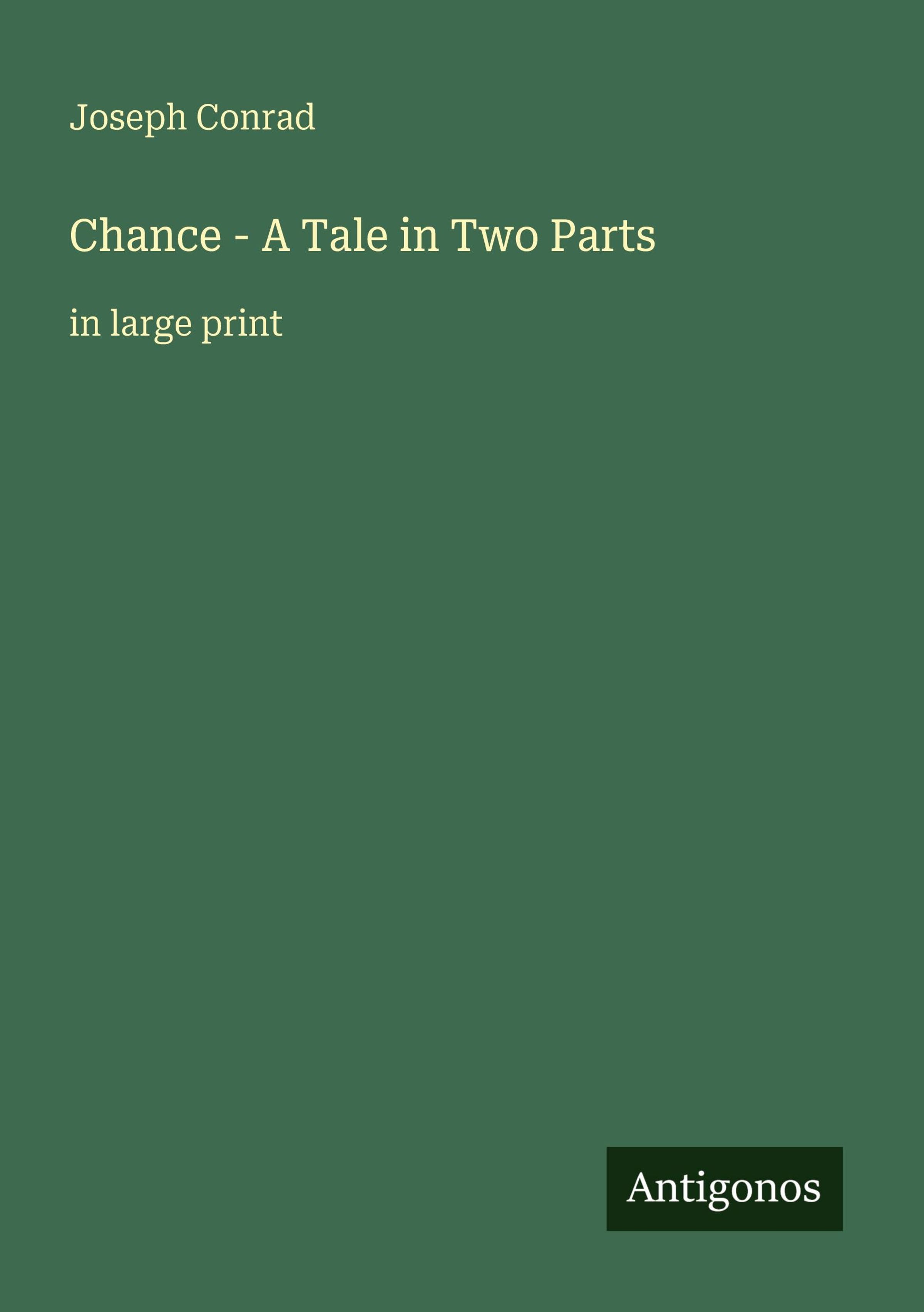 Oben links: "Joseph Conrad". Mittig: "Chance - A Tale in Two Parts". Unten rechts Logo "Antigonos". Grüner Hintergrund., Buch