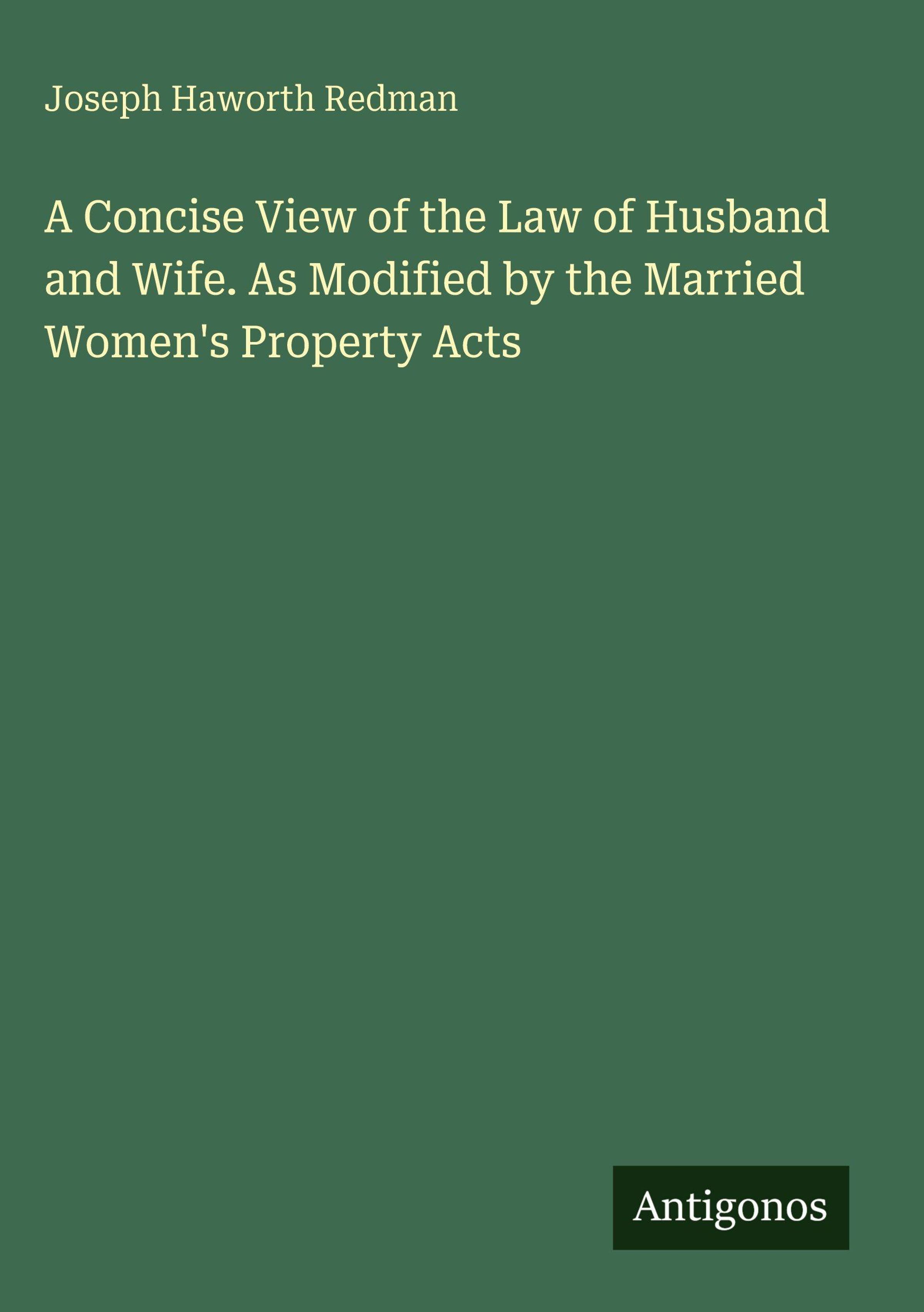 Joseph Haworth Redman: A Concise View of the Law of Husband and Wife. As Modified by the Married Women's..., Gebunden